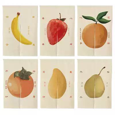 Cartoon fruit kitchen door curtain partition window bedroom hanging curtain semi-curtain fabric household punch-free windshield customization