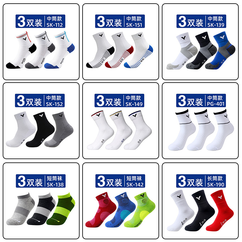 VICTOR VICTORY badminton socks 3 pairs Wiktor men's mid-barrel sports socks thick towel bottom SK152