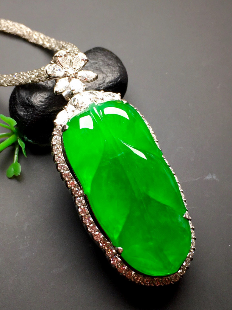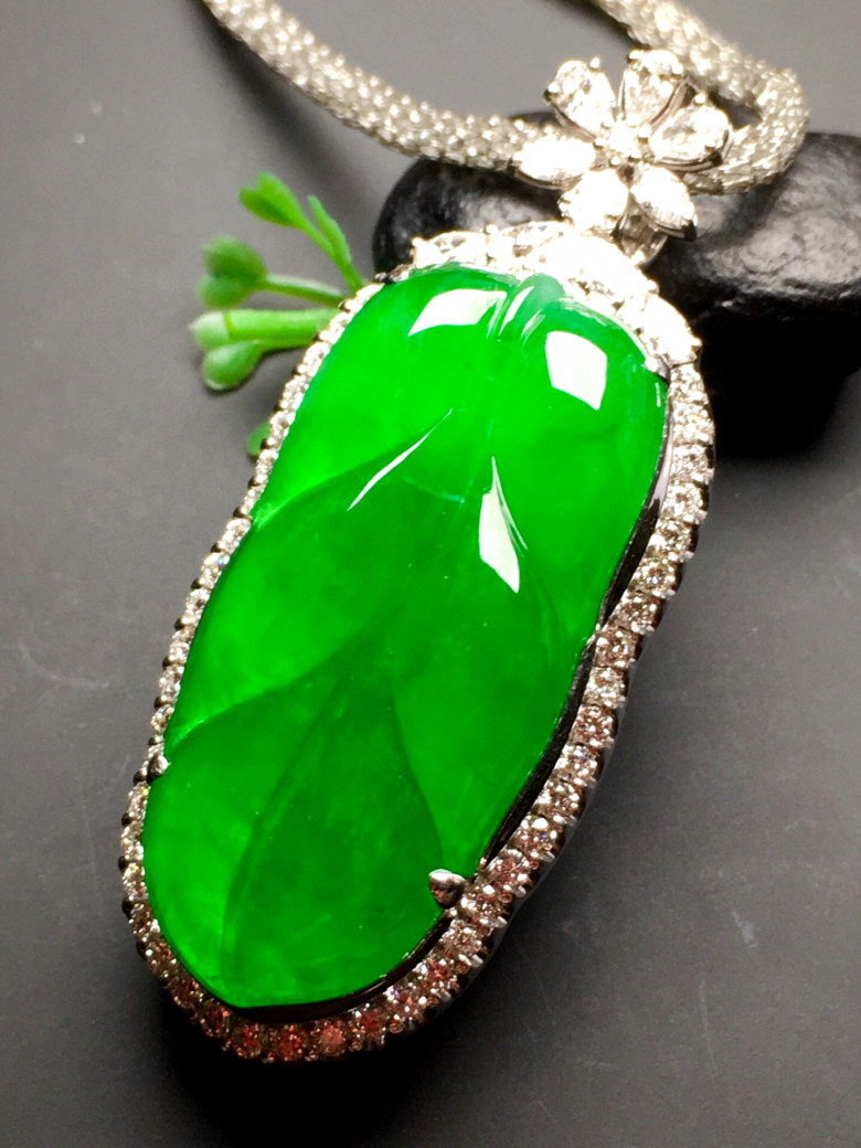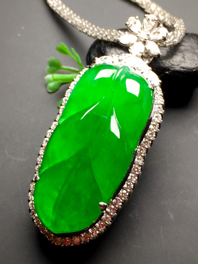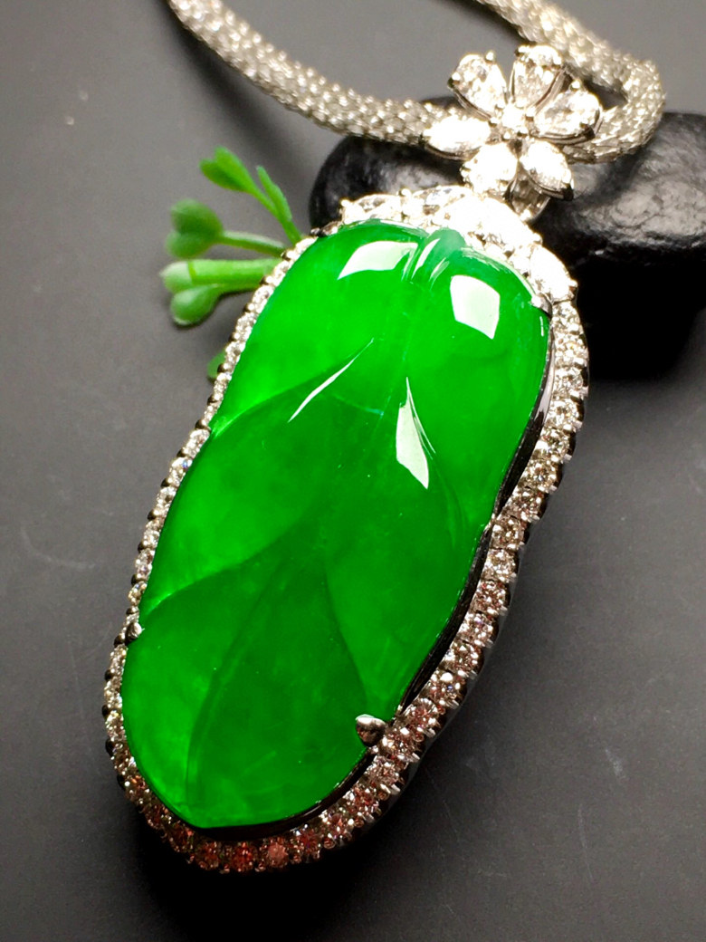 Myanmar old pit jade 18k gold inlaid full sun green leaves ice species jade pendant natural A goods neck ornament pendant