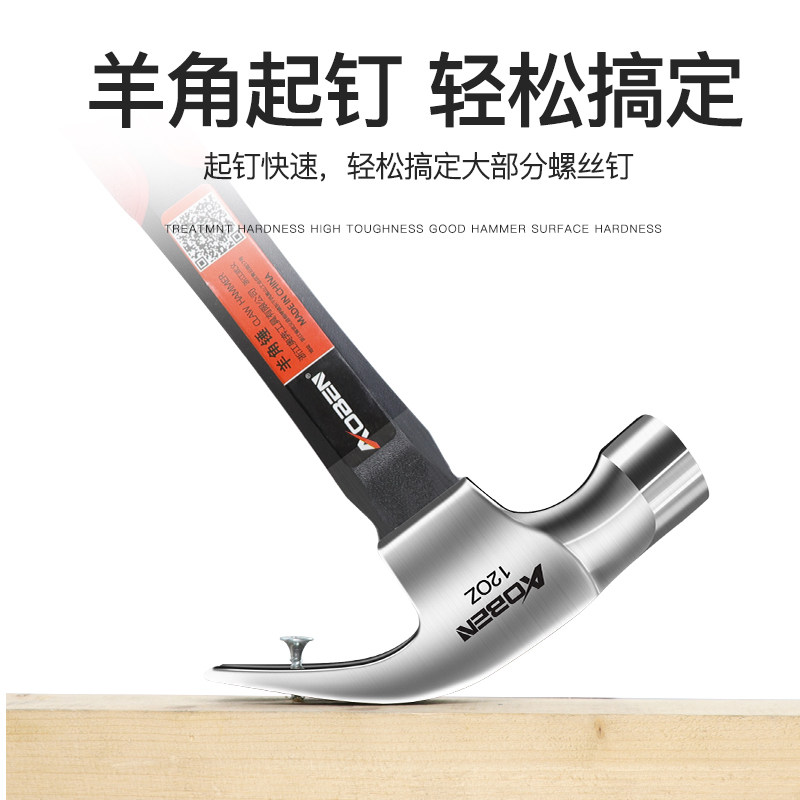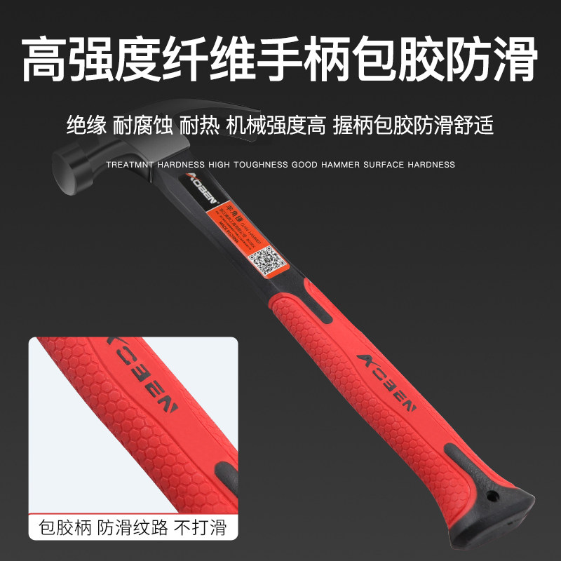 Fiber shank - strong magnetic 12OZ curved tail round toe flat horn hammer