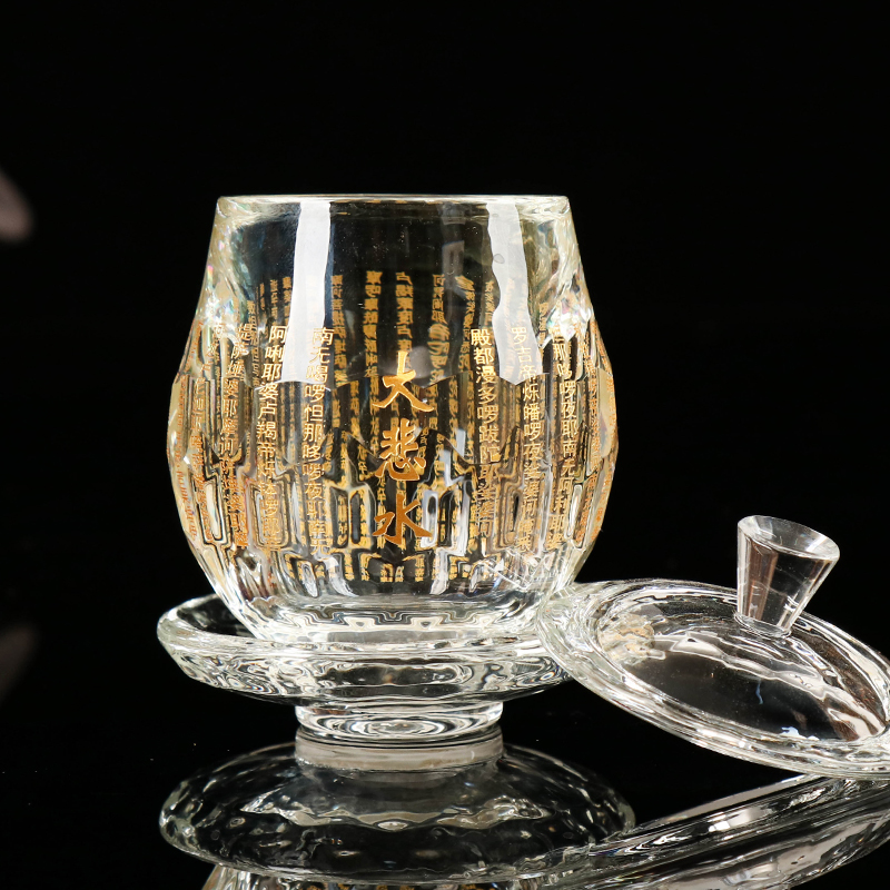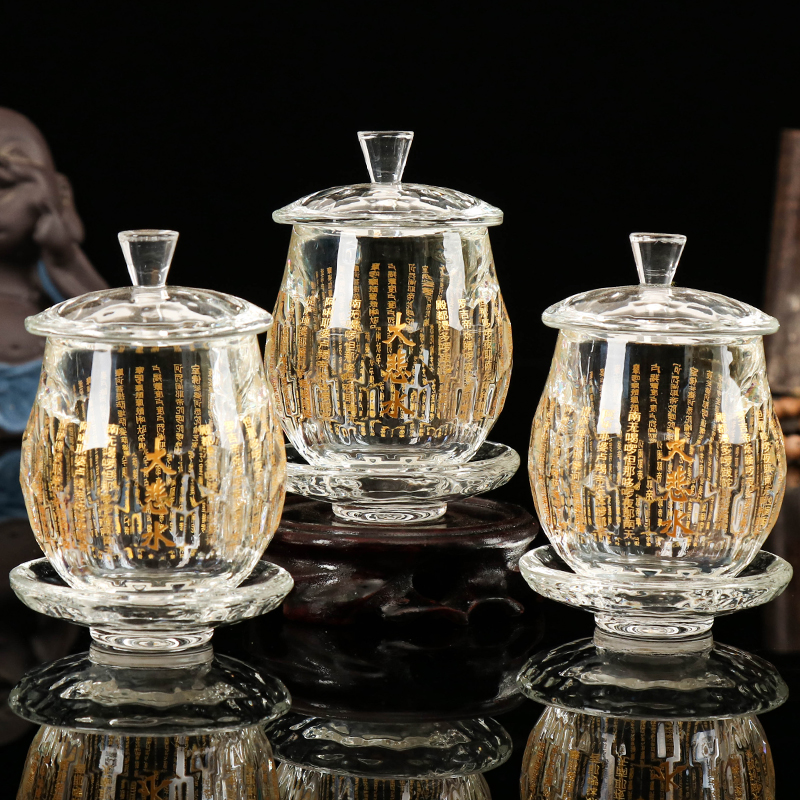 Swing piece supplies holy water glass big tragically water for cup crystal lotus for water glass hall front Guanyin water glass table swing piece