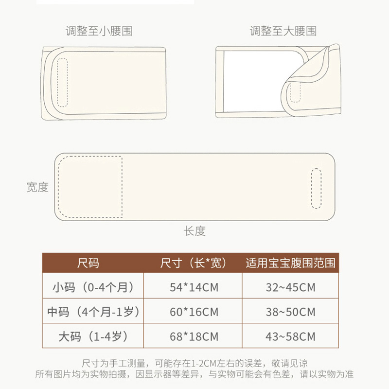 L code suitable for abdominal circumference 43 ~ 58cm Recommended for 1-4 years M code suitable for abdominal circumference 38 ~ 50cm Recommended for 4-12 months Scode suitable for abdominal circumference 32 ~ 45cm recommended 0 ~ 4