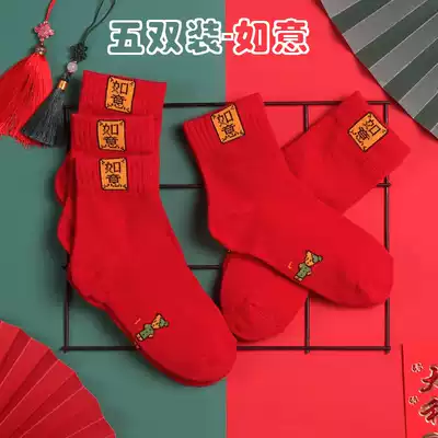 Red a pair of socks red auspicious red-safe and healthy red-auspicious red-lucky red-happy healthy red-blessing healthy red-happy red-Fu Ruyi red-five pairs red-Ji