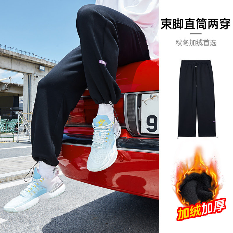 Free 1-Approver Plus Suede Sports Pants Men Winter Straight Barrel Pants Men Casual Work Pants Drawing Rope Bunch-footed pants-Taobao