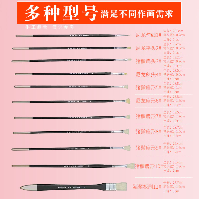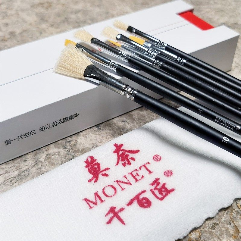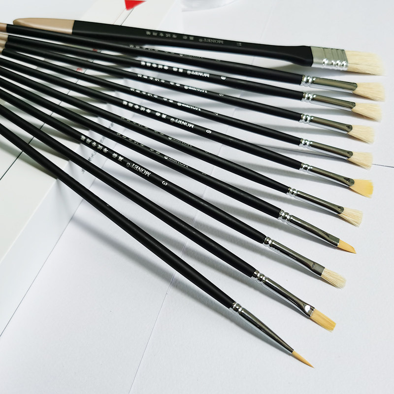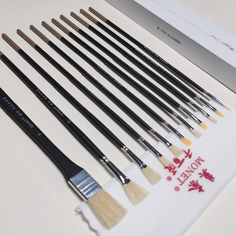 Monet Pig Mane Hard Hair Powder Painting Pen 11 Gift Box Clothing Oil Painting Propylene Pen Brush Art Raw Art Exam Special