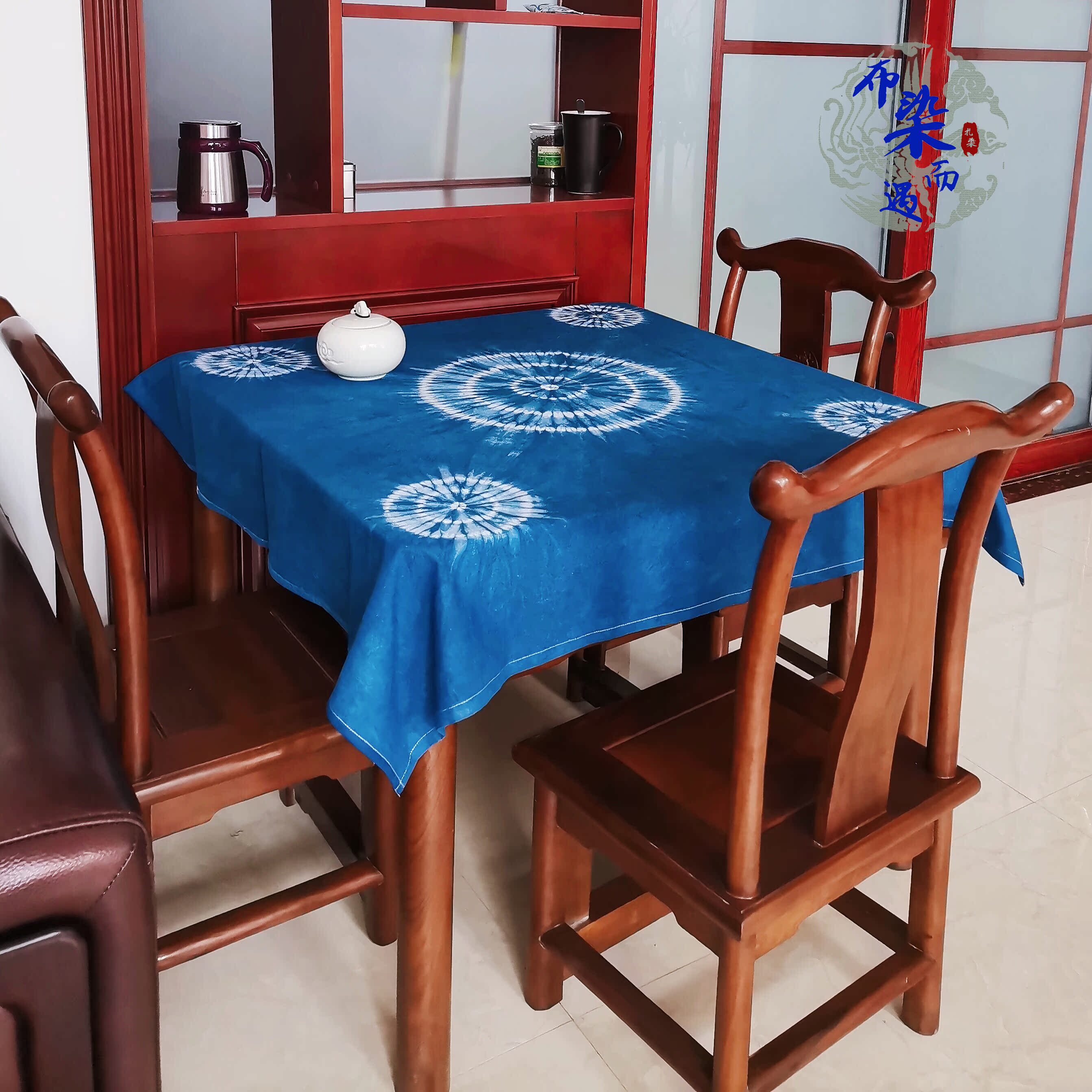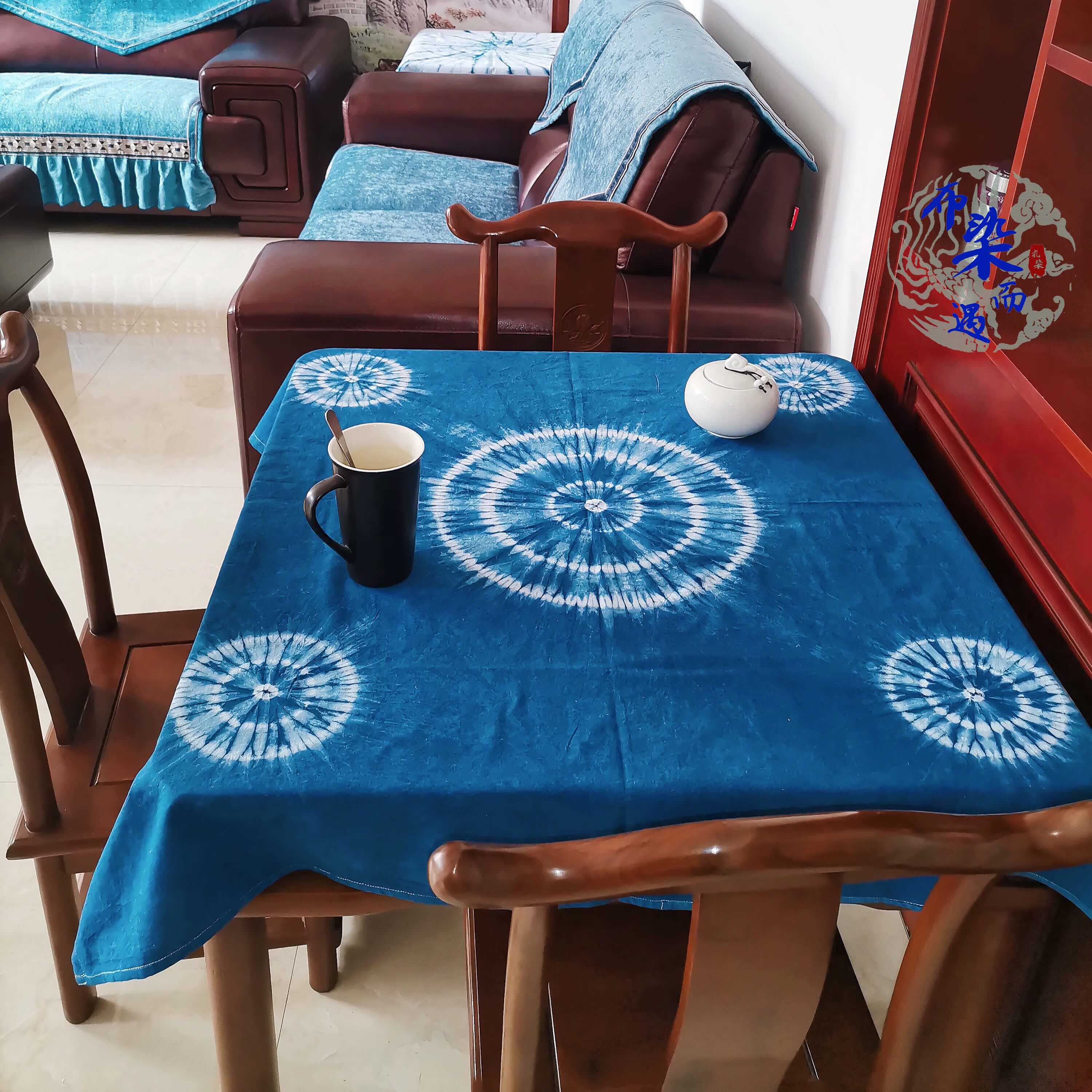 Original Yunnan characteristic tie-dyed cloth plant blue-dyed cotton tablecloth tablecloth square coffee table decoration hanging cloth handmade diy