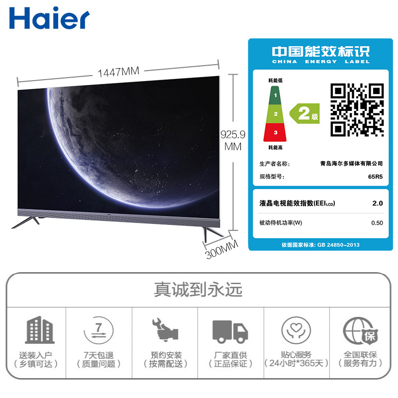 Haier Haier 65R5 65-inch Smart Full Screen TV 4K HD Intelligent Internet flat LCD