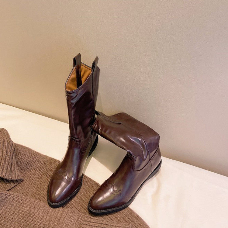 Strong push 2021 new ~ retro coarse and tip leather boots red and western boots cowboy boots