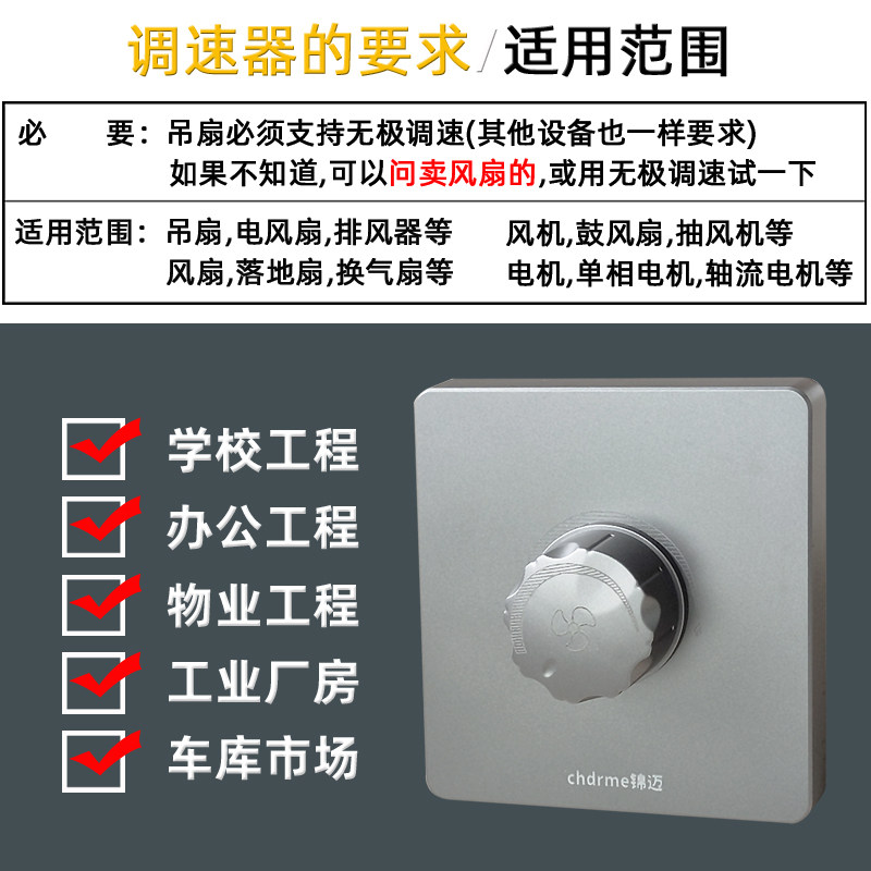 Jinmai 500W star gray high-power governor concealed 86 type ceiling fan stepless speed control switch panel 220V
