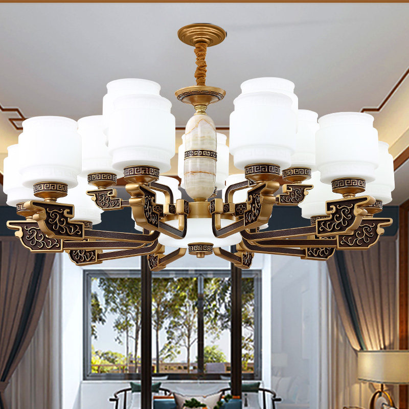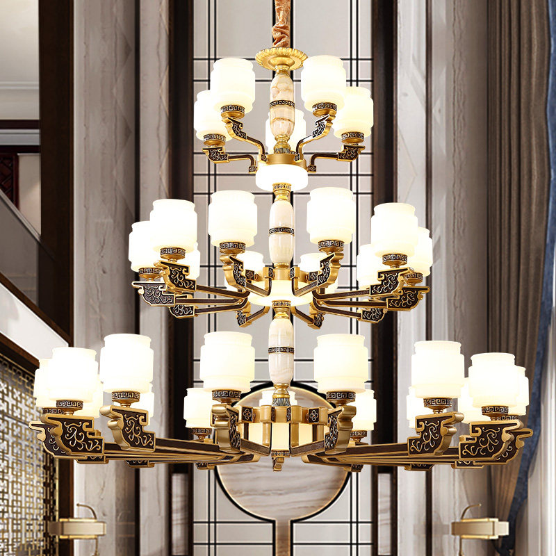 New Chinese Large Chandelier Duplex Building Living Room Lamp Buddha Hall Temple Ancestral Sample House Display Central Lobby Building Hollow Villa Chandelier