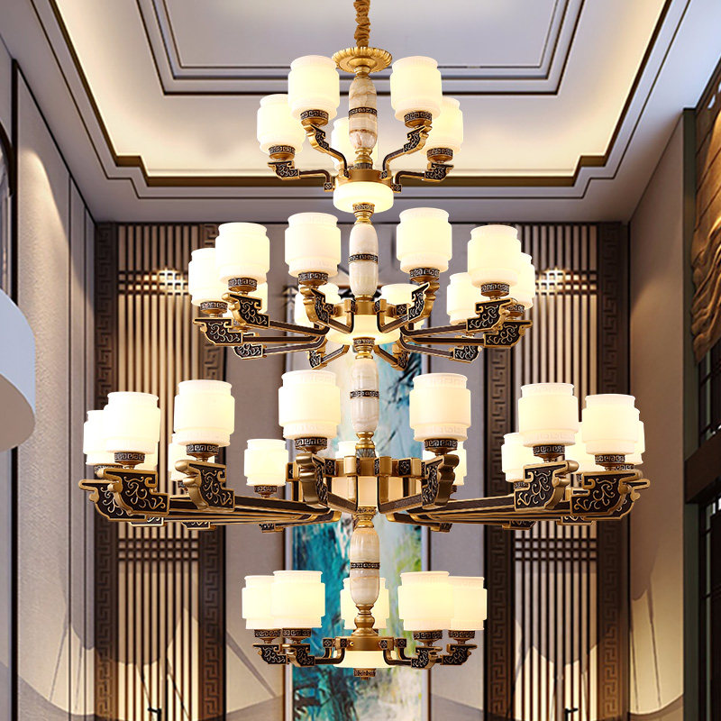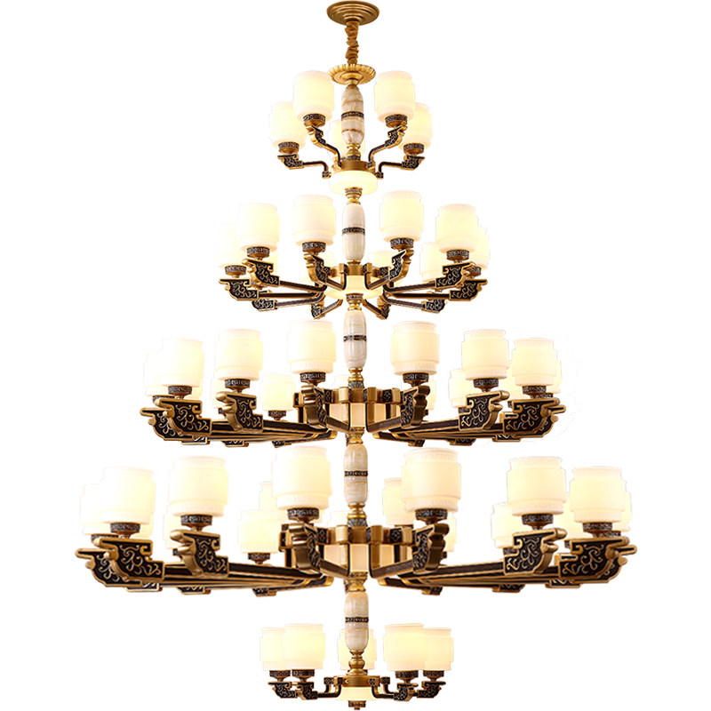 Light brown 65 head six-layer jade large hanging lamp quality 10 years 55 head five layers jade large hanging light warranty 10 years 42 head four layers jade large hanging lamp quality insured 10 years 35 head four layers jade