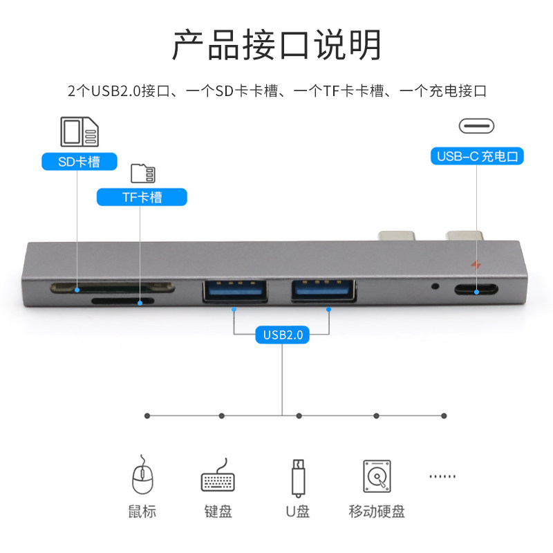Dual Type-C connector expansion dock expansion USB adapter HUB extended line of contact sliding mouse keyboard U disc SD card reader TF converter suitable for Apple MacBook Pro pen