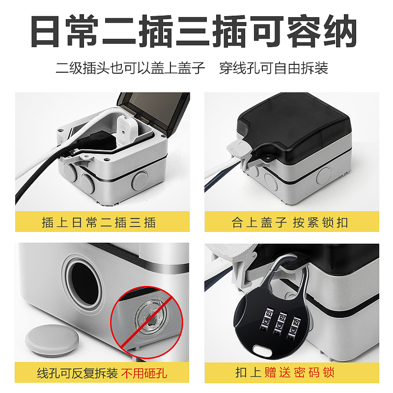 Electric car charging source extension cord waterproof socket outdoor rain-proof 3 holes 16A Number of electric power metering sockets