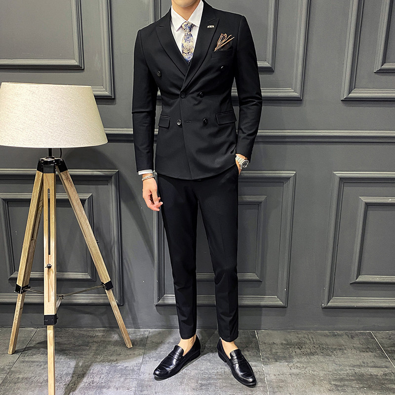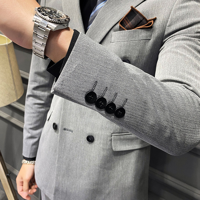 Dark grey Three sets (Western suit Machia suit with shirt collar tie-tie chest towel) black Three sets (Western suit Machia suit with shirt collar tie tie chest towel) light grey three sets (