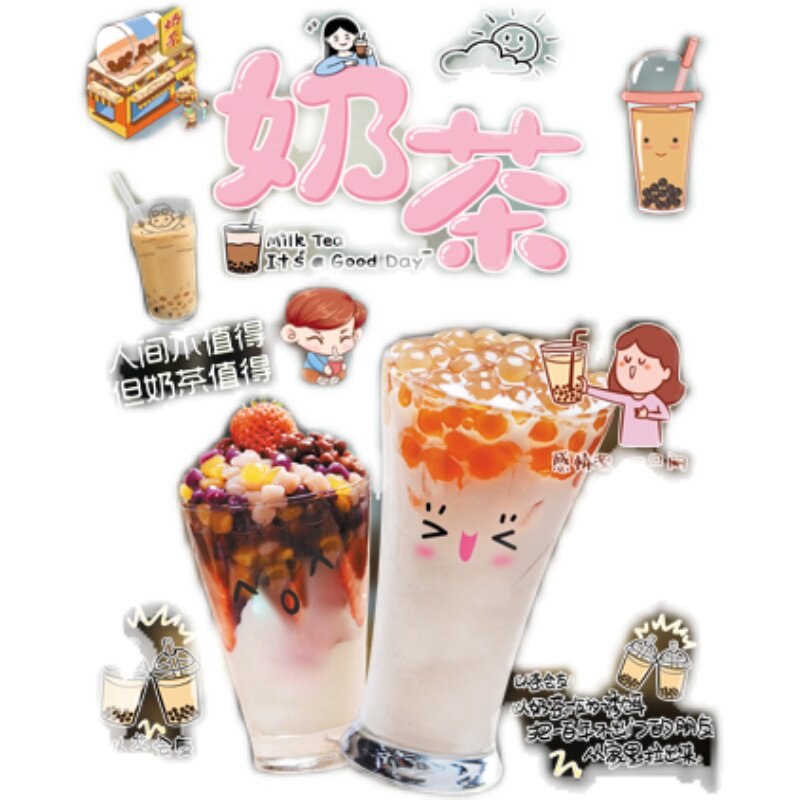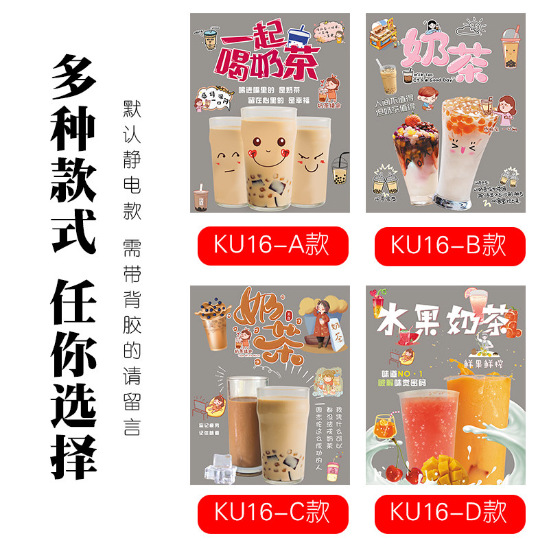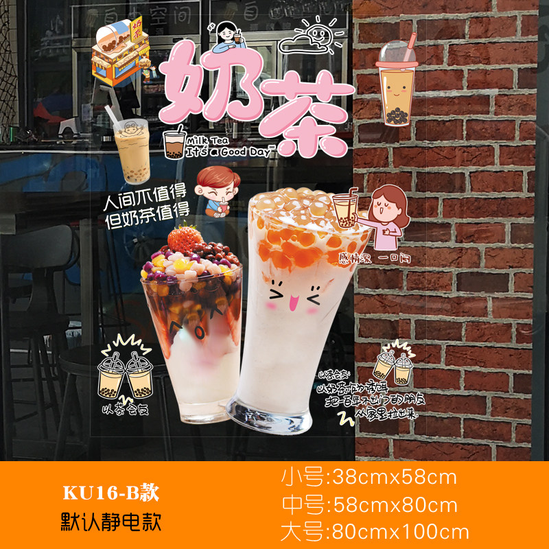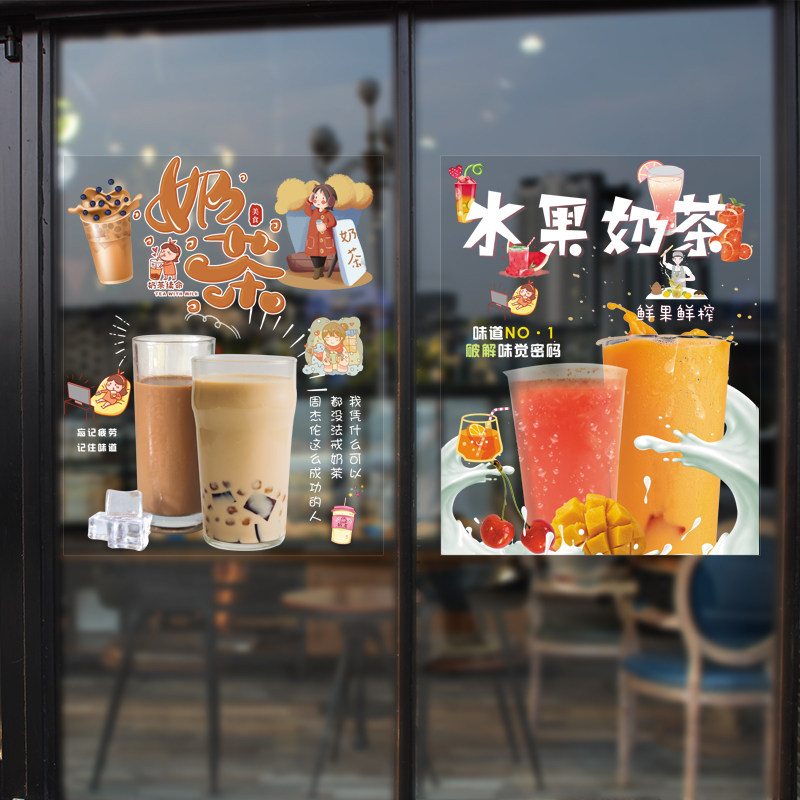 Personality creative milk tea shop glass stickers milk tea coffee fruit drink shop window sliding door decoration poster stickers