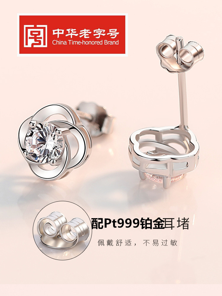 pt999 Platinum Earshot 2022 new platinum earrings Four Leaves Grass Diamond Earrings Girlfriend Birthday Present