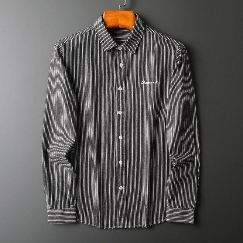 Spring autumn 2021 striped embroidery shirt male long sleeve Korean version trendy casual inch shirt body light business positive dress shirt