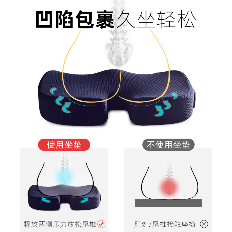 Memory foam cushion office sedentary tail vertebra decompression seat hemorrhoids breathable buttocks thickening hemorrhoid cushion fart pad