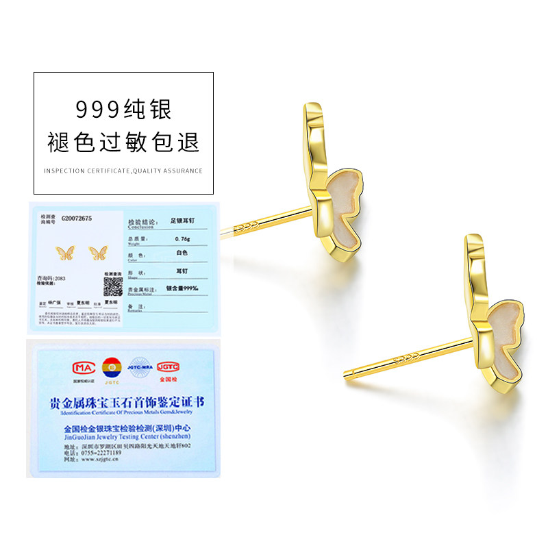 999 Sterling Silver Butterfly Stud Earrings Women's Small Simple Earrings Frigid Wind 2021 New Trendy Ins Premium Earrings
