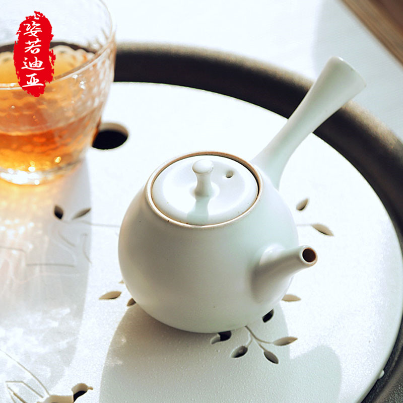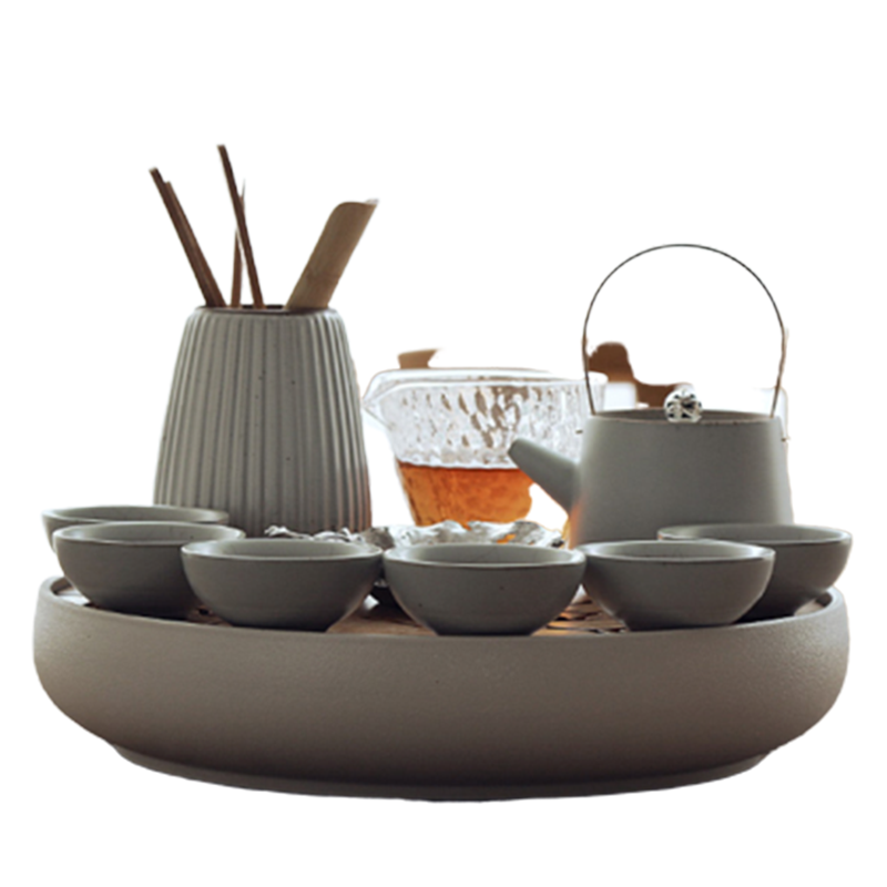ZYRODIA Ru Kiln Kung Fu Tea Set Japanese Style Light Luxury Simple Tea Tray Modern Household Glass Teapot Gift Box