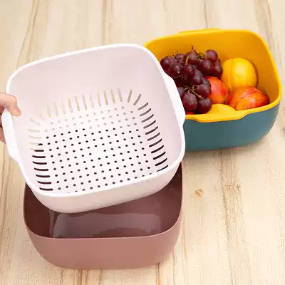 Double-layer hollow fruit basin washing fruit artifact drain basket household vegetable basket fruit basket fruit plate kitchen washing basin