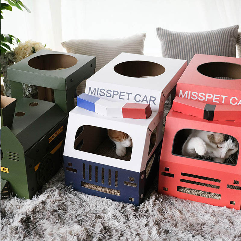 Puff Cat Misspet Car Series Train Fire Truck Police Car Cat Scratch Board Cat Toy Grinding Claw Folding Nest