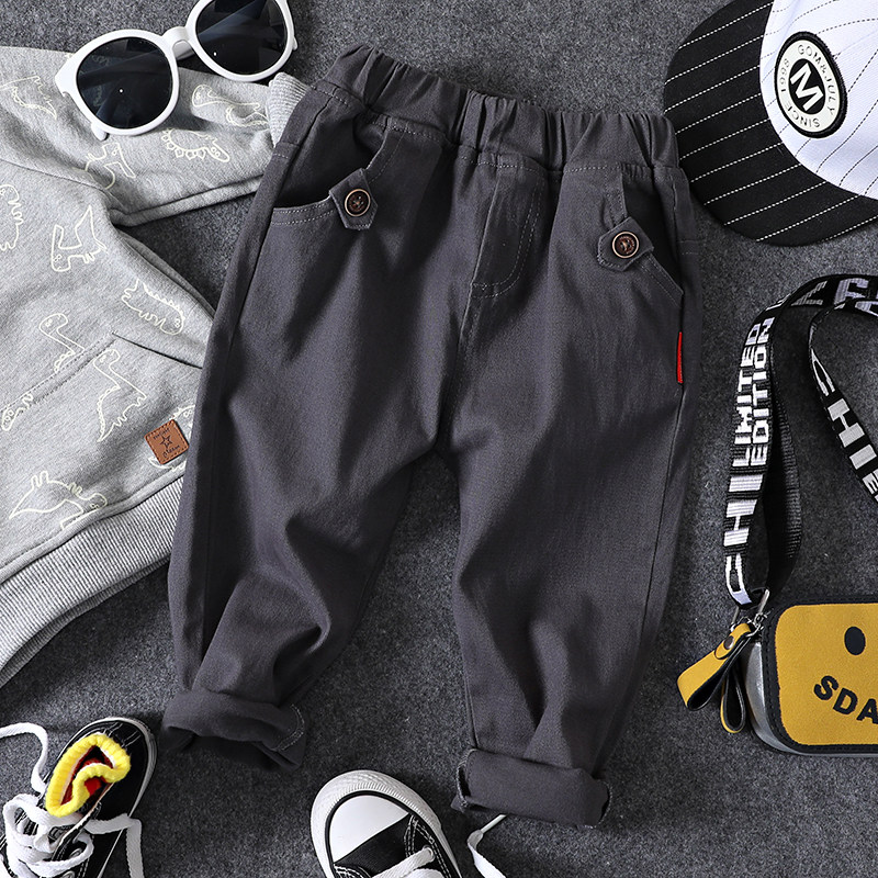 Autumn new children's casual pants boys and girls button-decorated trousers children's baby all-match pants tide