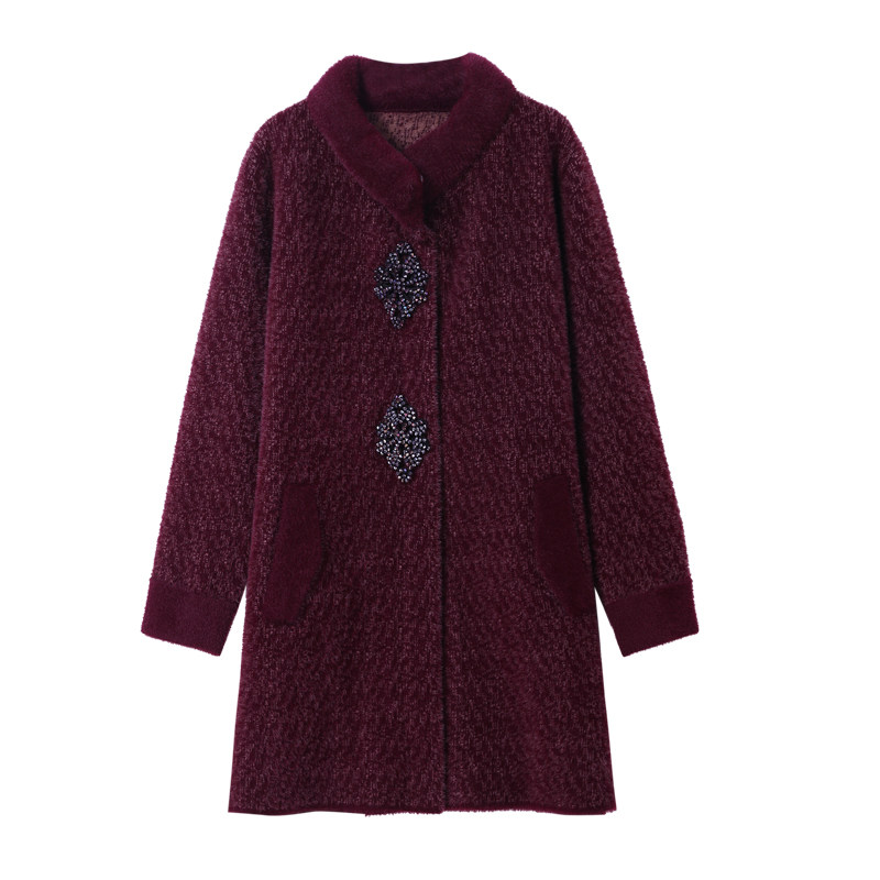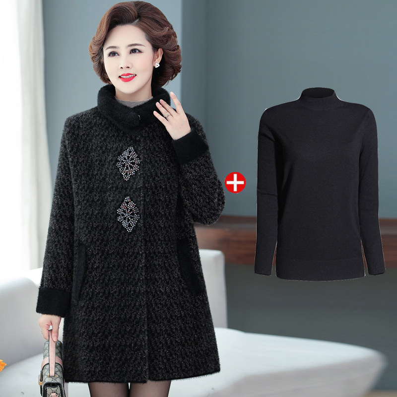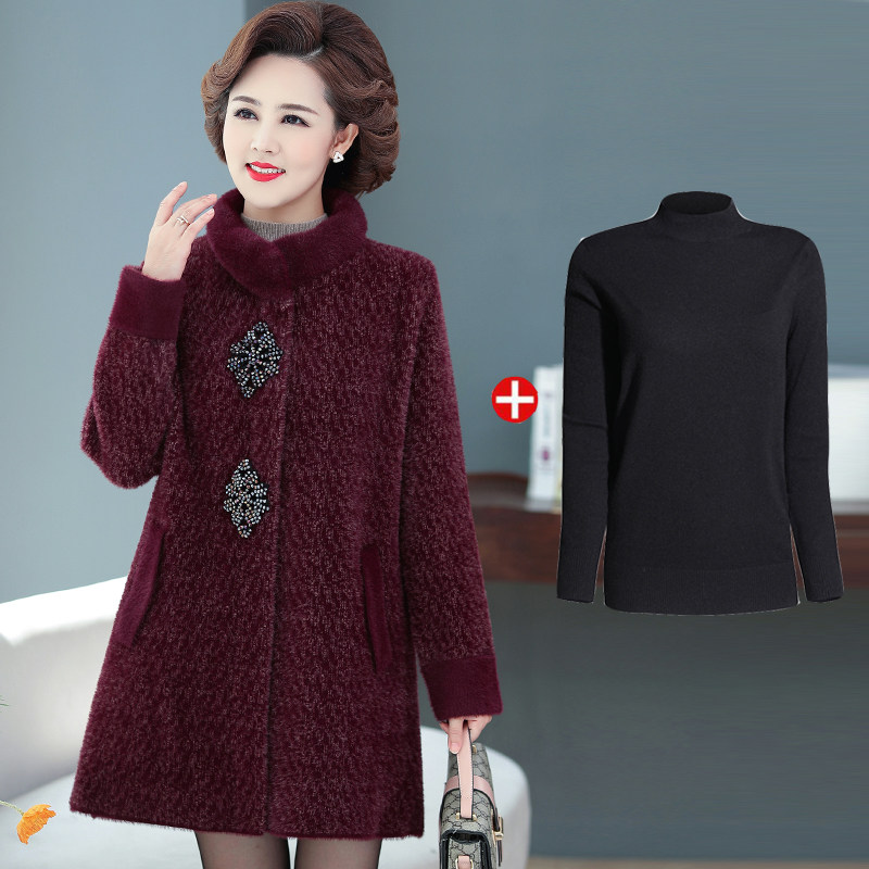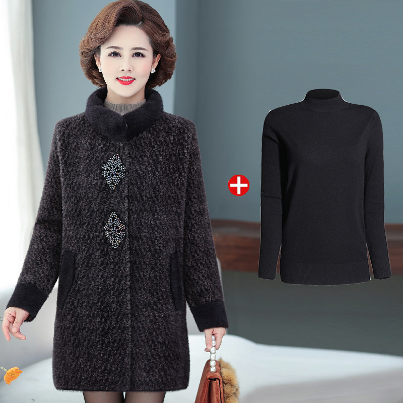 Middle Aged Autumn Winter Dress Noble Lady Cashmere Big Clothes Lady Gafu Intensify Code Fat Mom Thickened Ferret Jacket