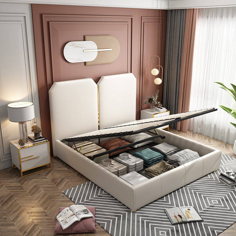 Modern minimalist light luxury ins bed 1 8m leather bed master bedroom double bed Nordic simple high-end storage wedding bed