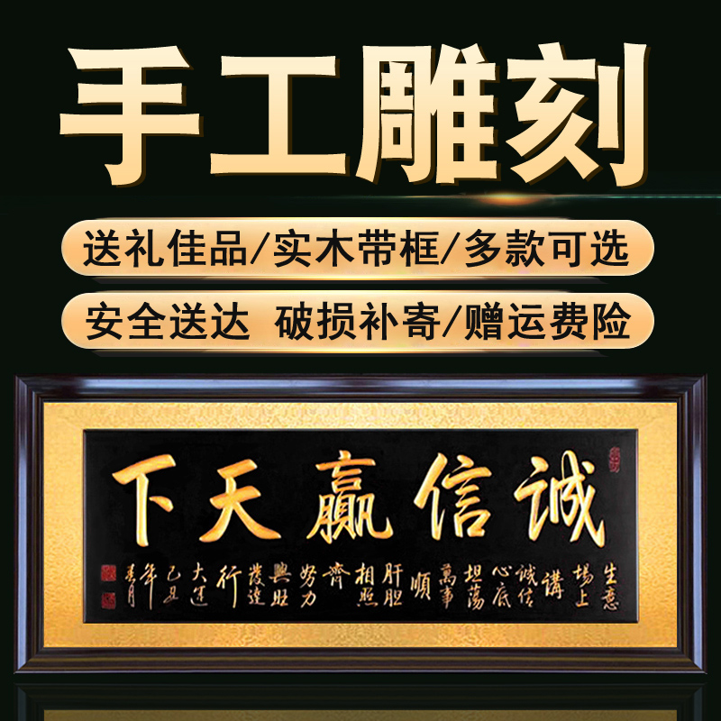 Hand-carved solid wood plaque The company moved to the hotel opening ceremony plaque Integrity wins the world office calligraphy and painting