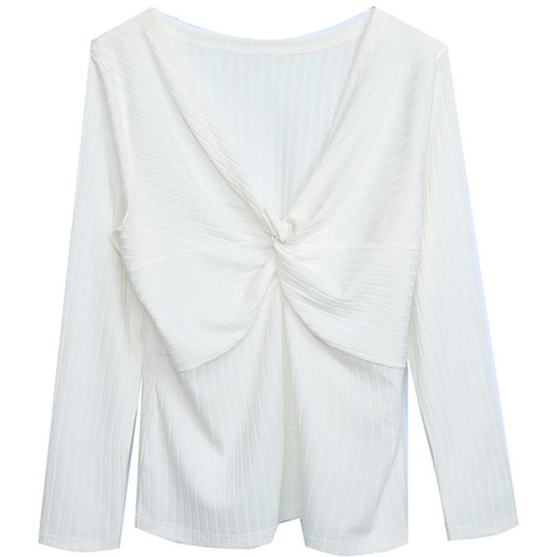 Fat Fairy Yingying Large Size Women's V-neck Twisted Chest Loose Autumn Knitted Bottoming Shirt Pullover Solid Color Western Style Inside