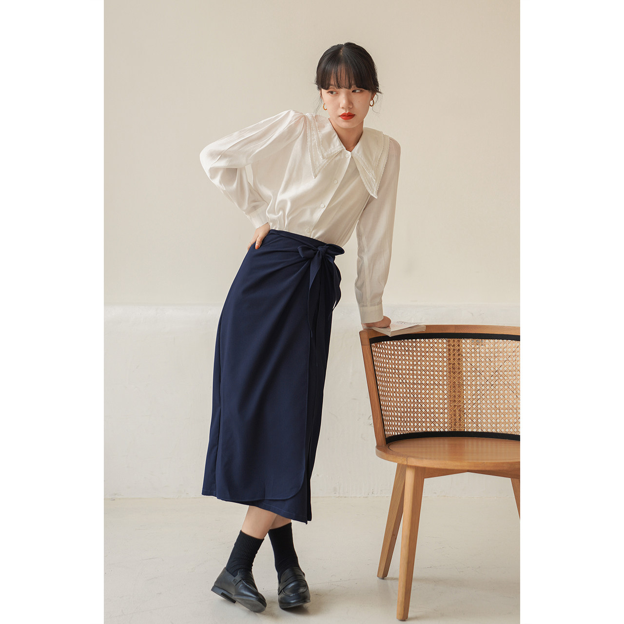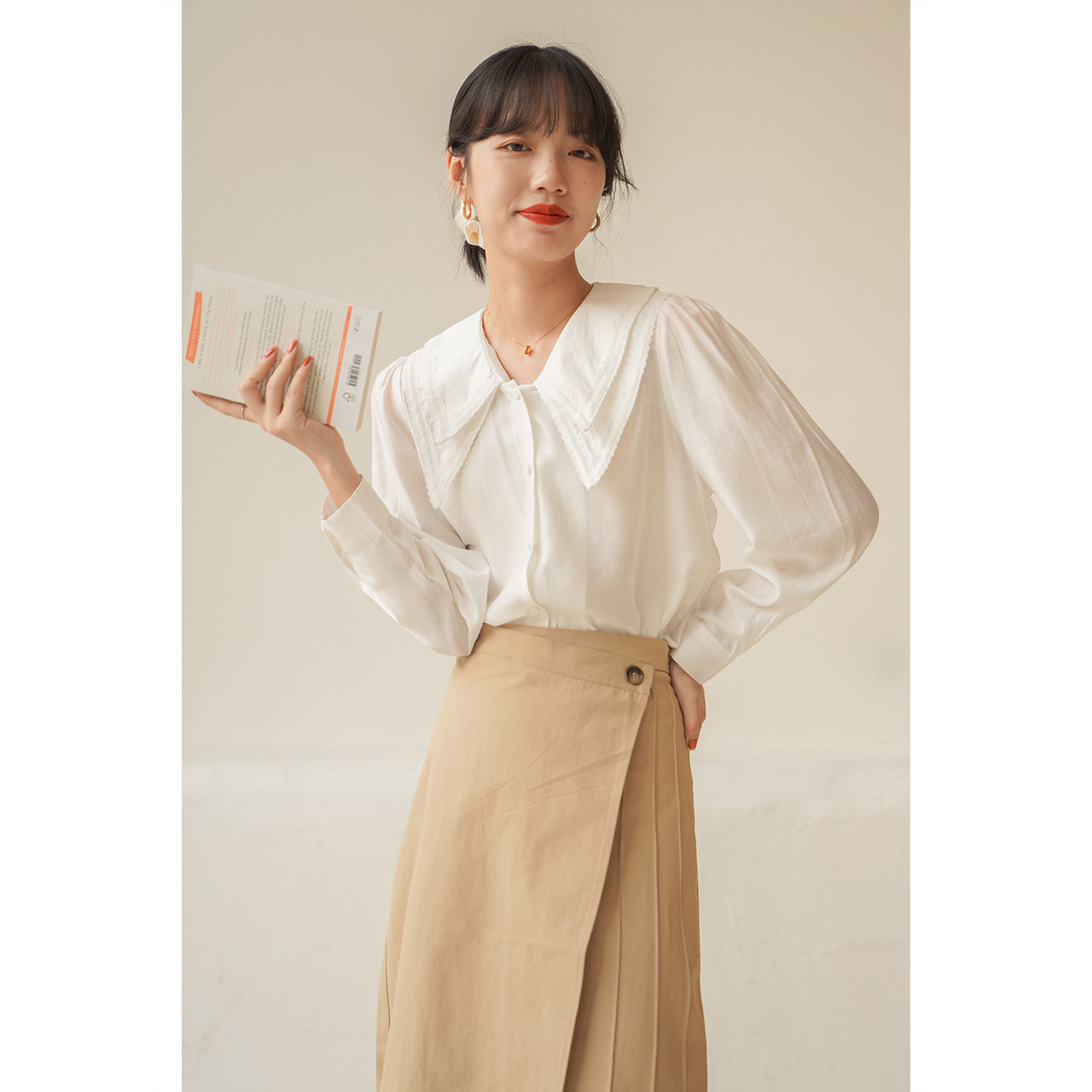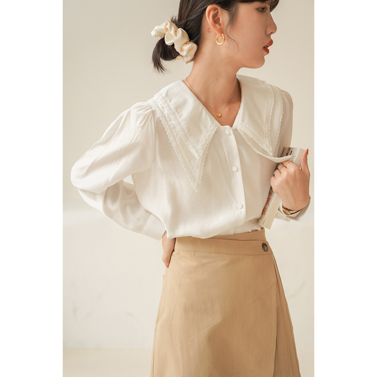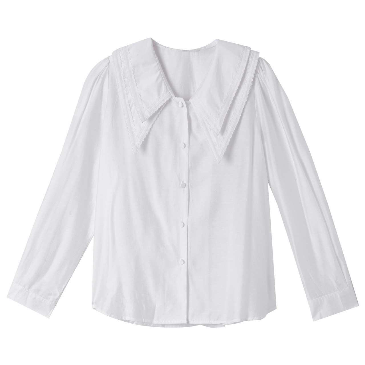 Falsilk Alu Style Retro Double Collar Shirt Woman Design Sensation Small Crowdfall New Long Sleeve Temperament White Blouse