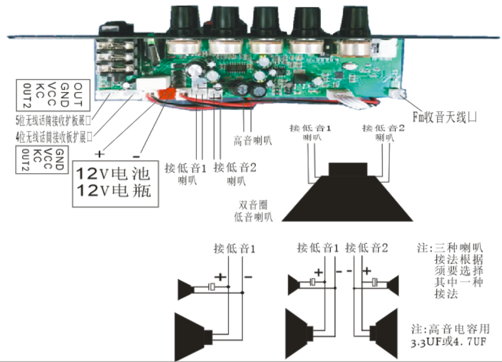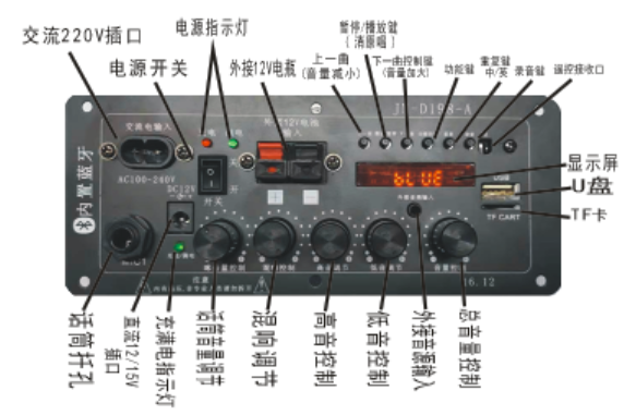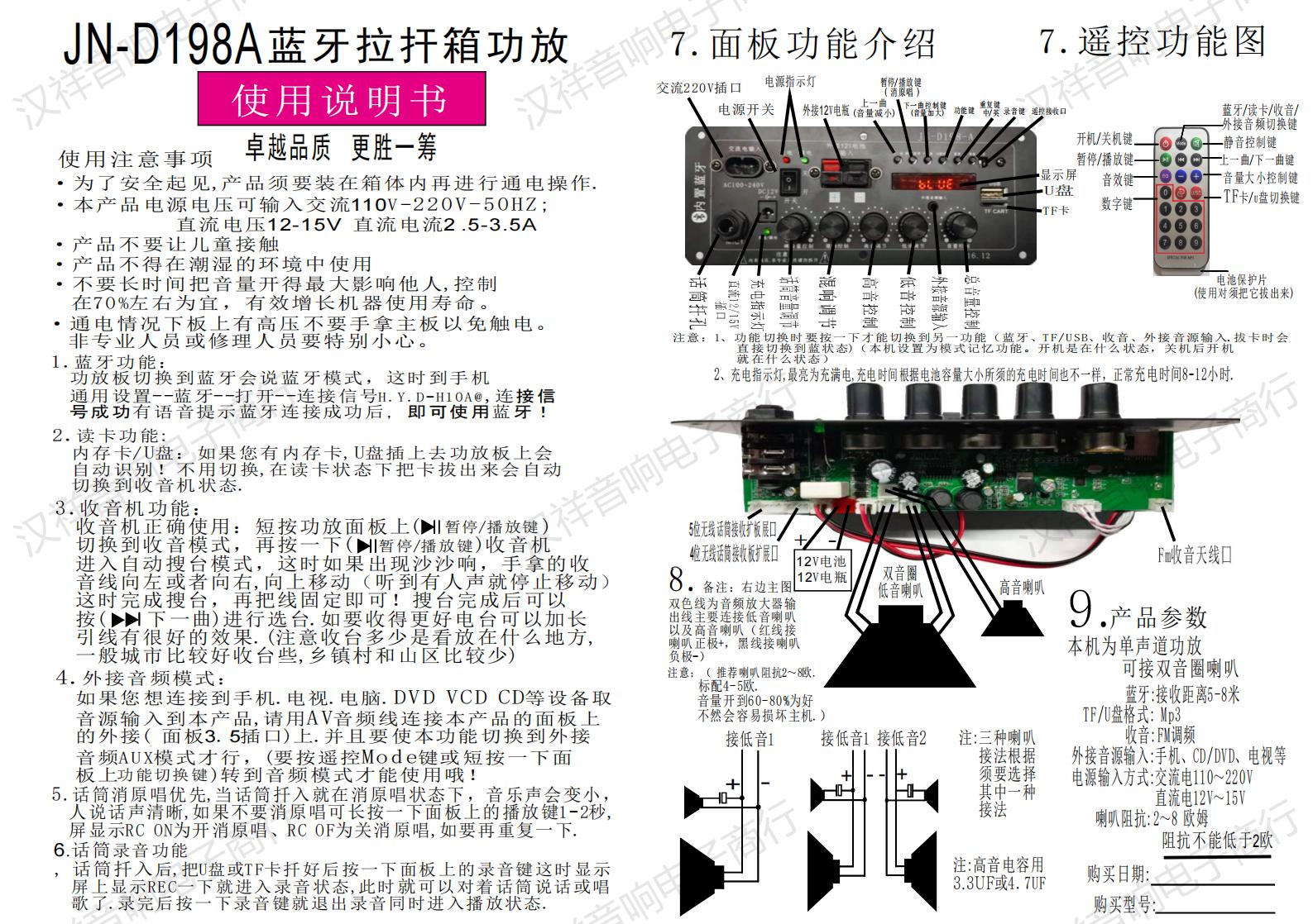 Square dance amplifier board built-in Bluetooth can charge the 12V battery bass card pack trolley box