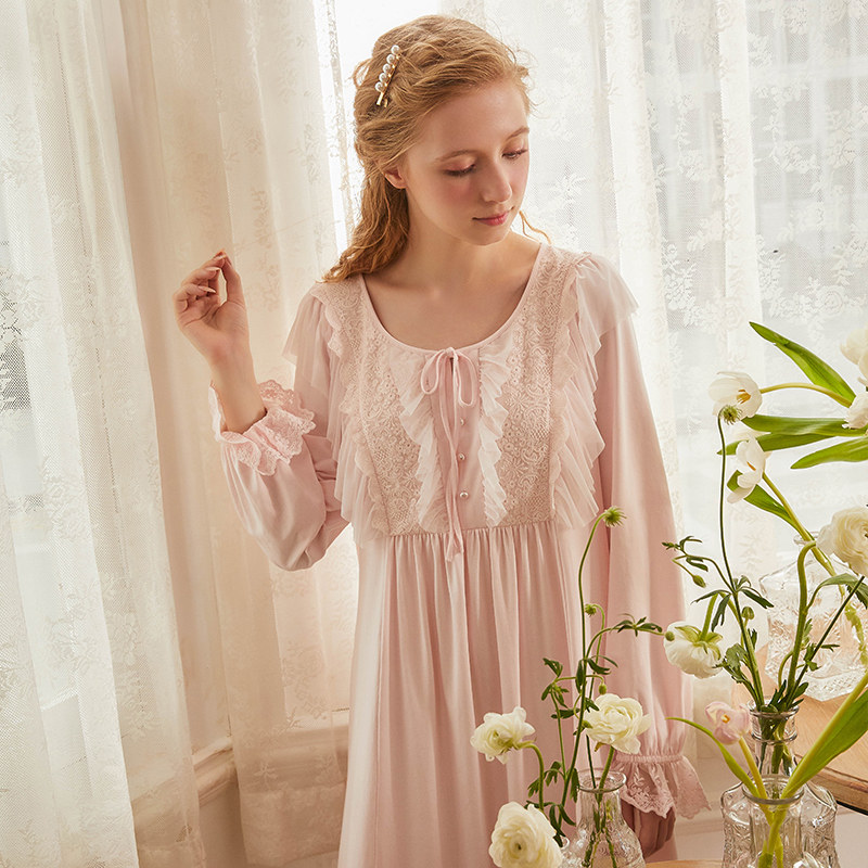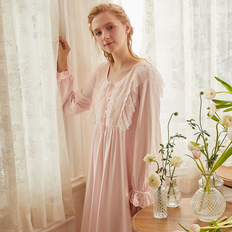 Dust Hee 2020 New Original Cotton Sleeping Dress Woman Spring And Autumn Long Sleeve Long Skirt Palace Court main wind sweet and beautiful pyjamas