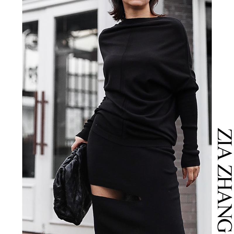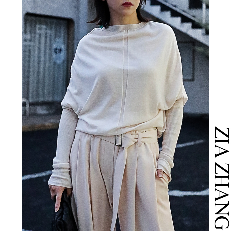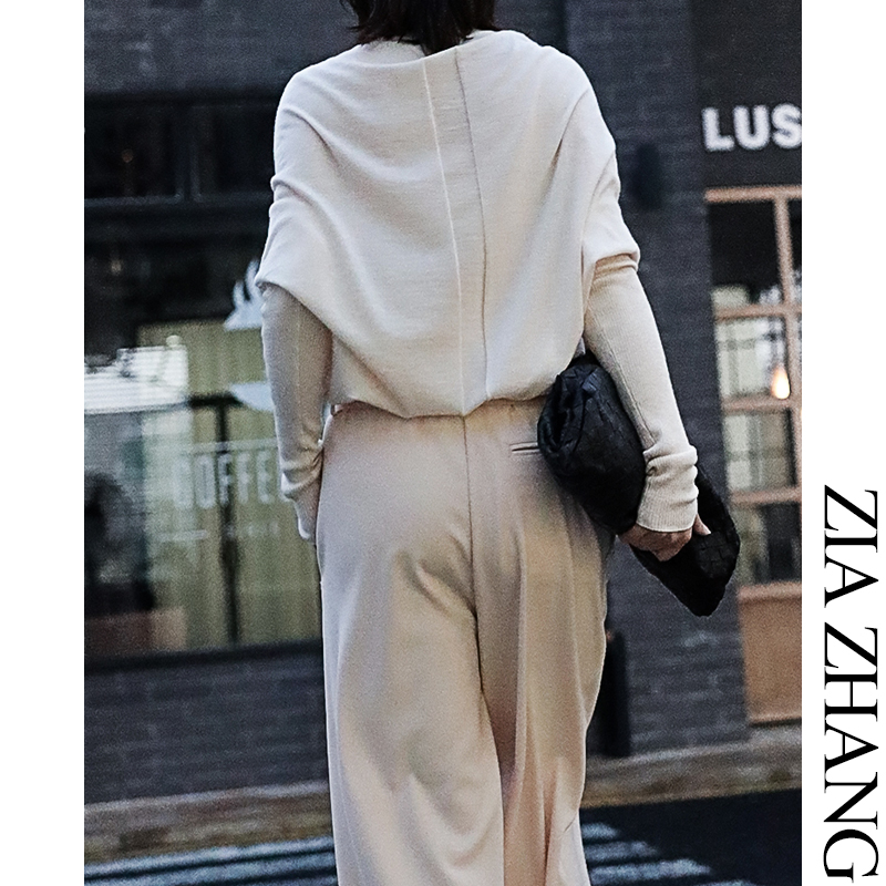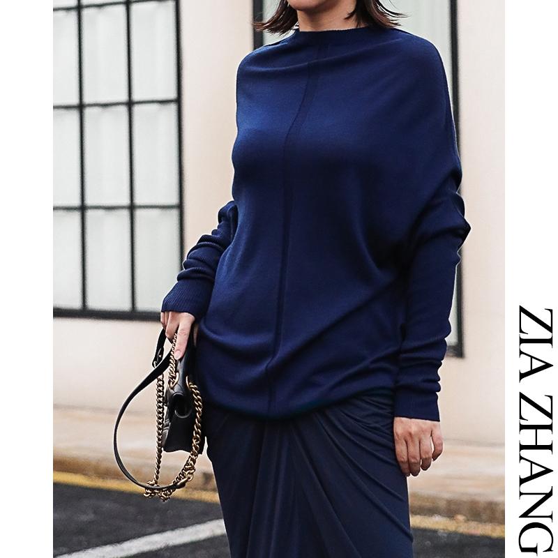 Z boss Volcano collar loose bat sleeve long-sleeved sweater loose mid-length Australian wool wool knitted top
