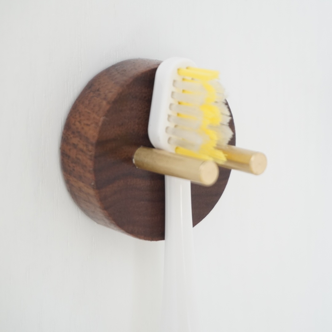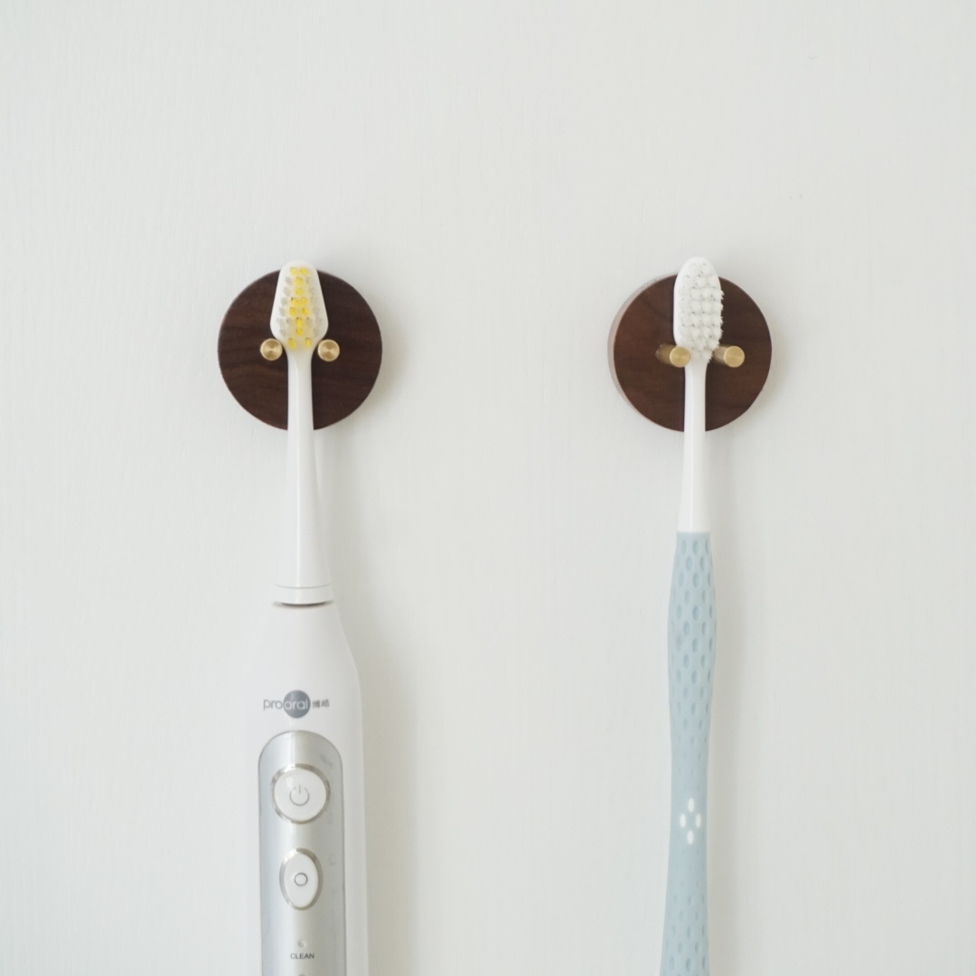 Solid Wood brass toothbrush grade punch-free electric toothbrush storage bracket cosmetic room nail-free wooden storage rack