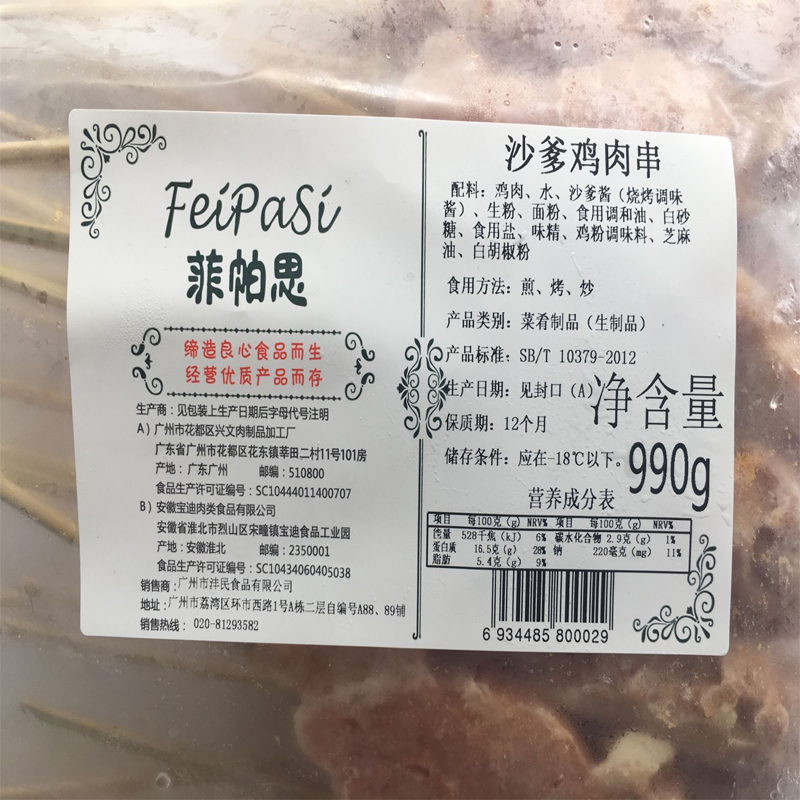 Fipath Sharpa Chicken Strings Barbecue Iron Plate Fried Snack Chicken Strings South Asian Chappa Meat Strings