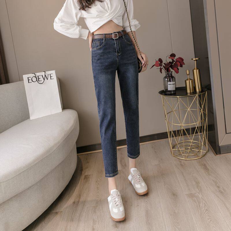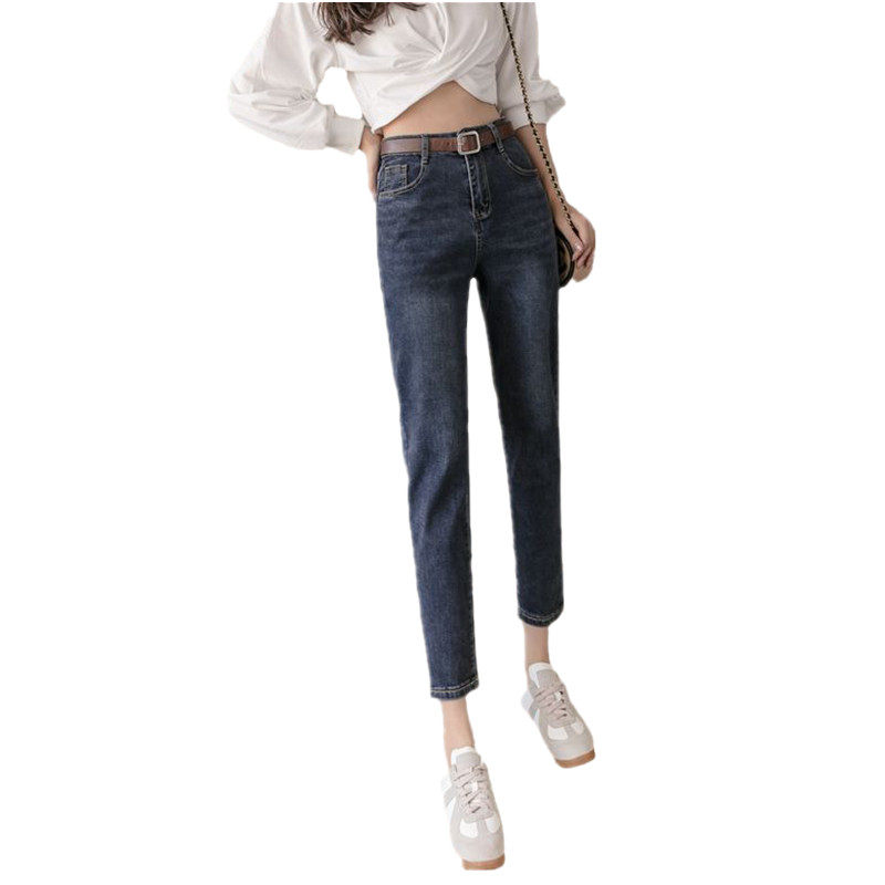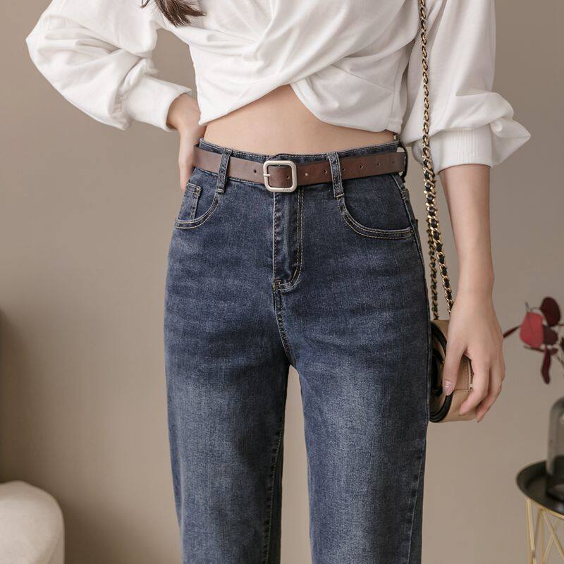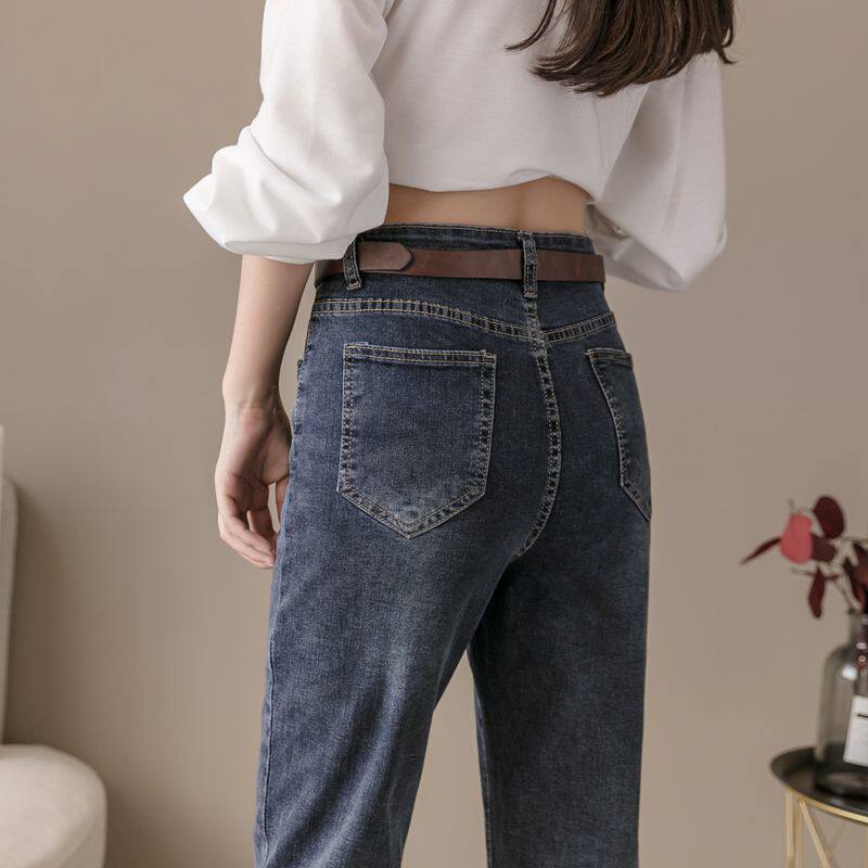 Straight Drum Jeans Lady Spring Autumn 2022 New Korean Version High Waist Display Slim Rounder Loose 90% Small Feet Kharen Pants