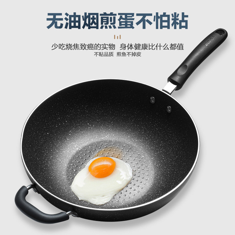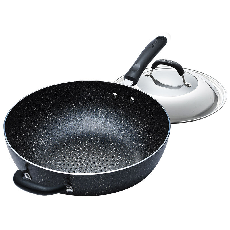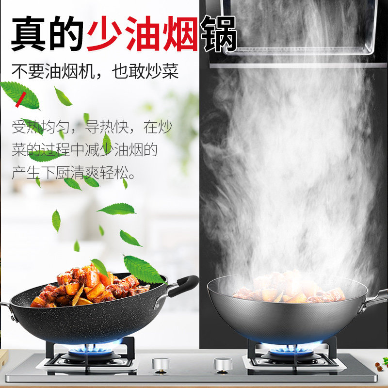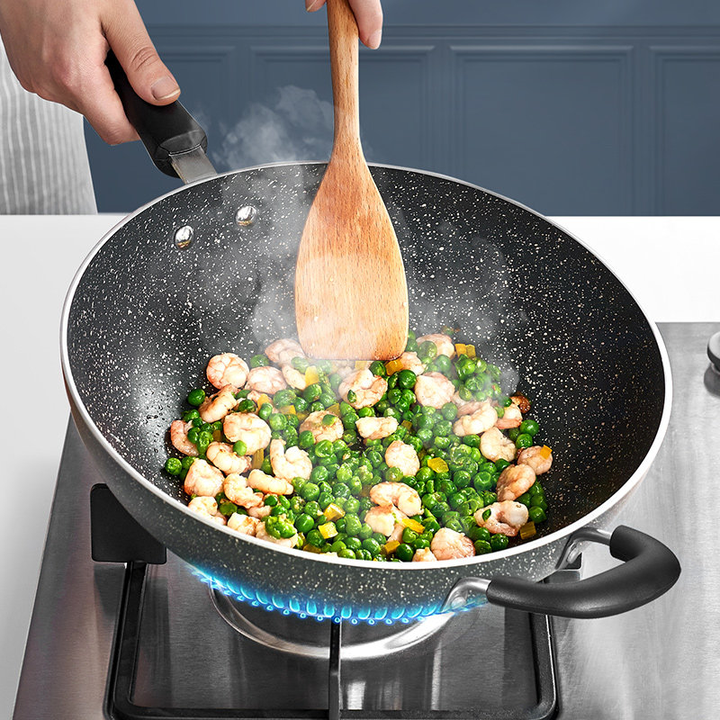 Suber non-stick wok smoke-free pan home wheat rice stone color stir frying pan induction cooker gas universal