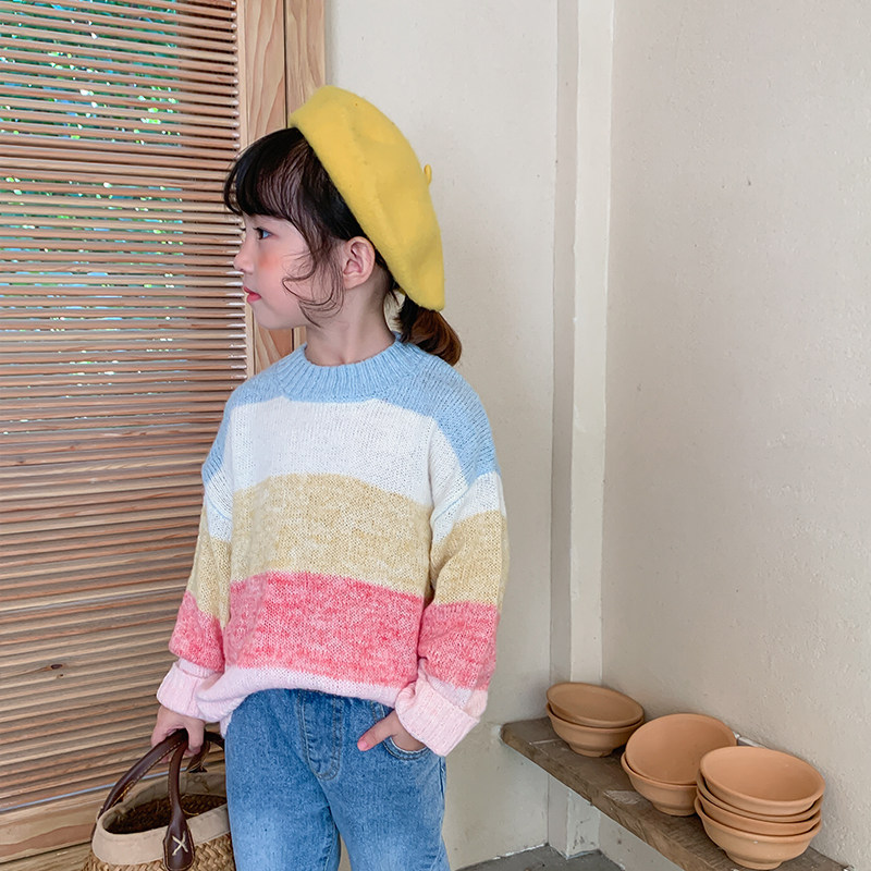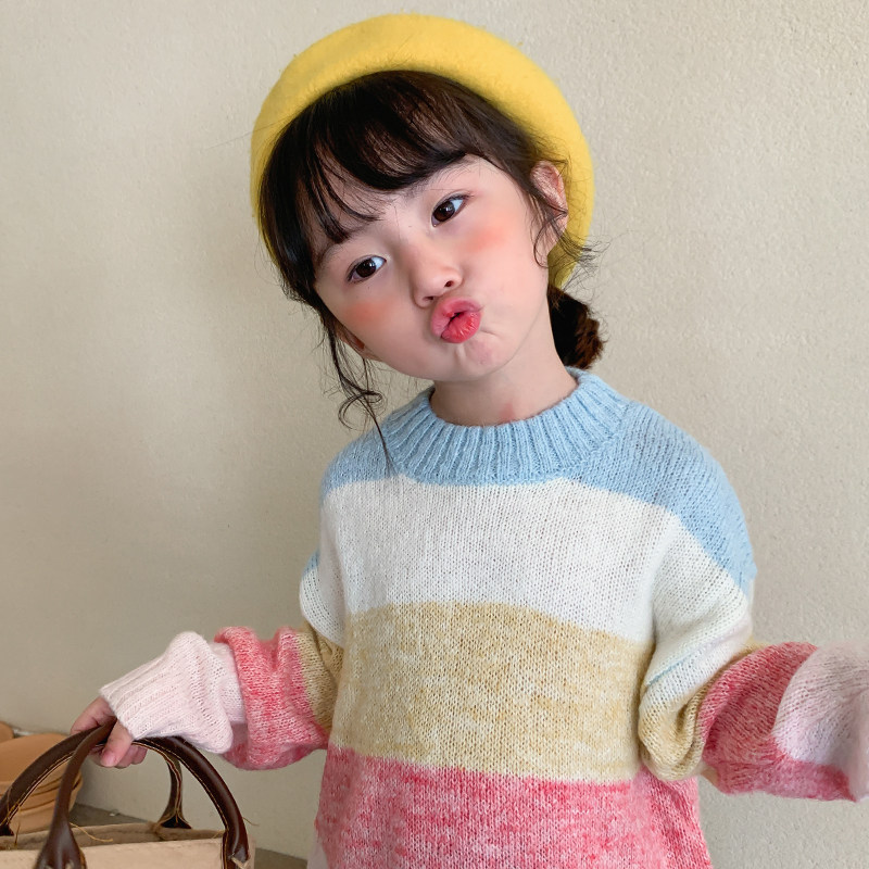 Girl's sweater headsets 2020 new 1 Korean version 2 year old foreign female baby wool sweatshirt Knitted Cardiovert