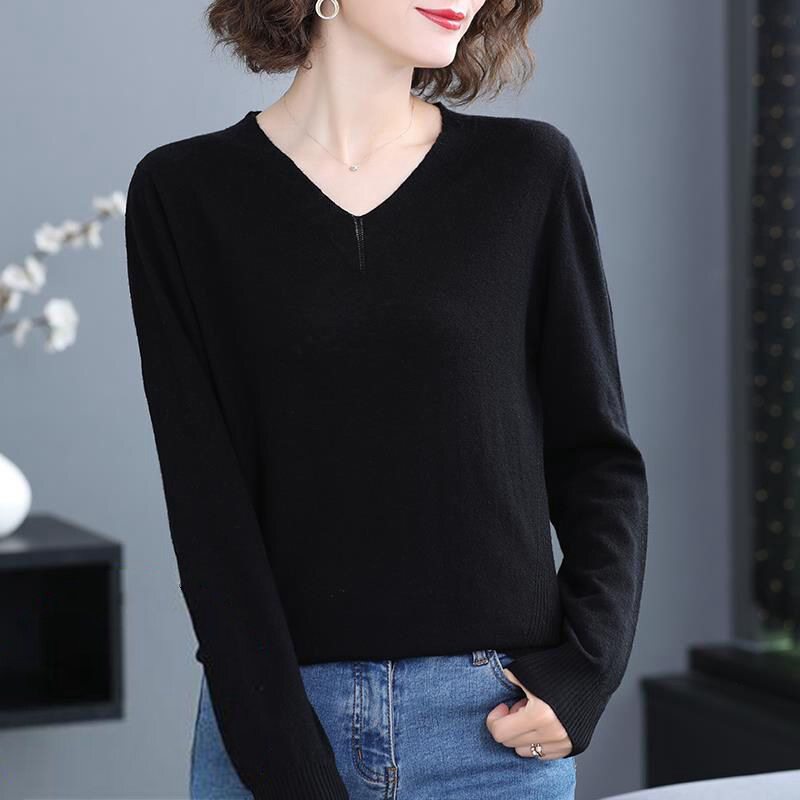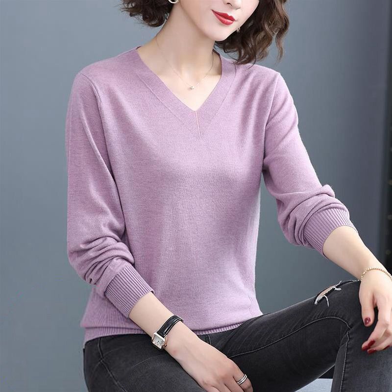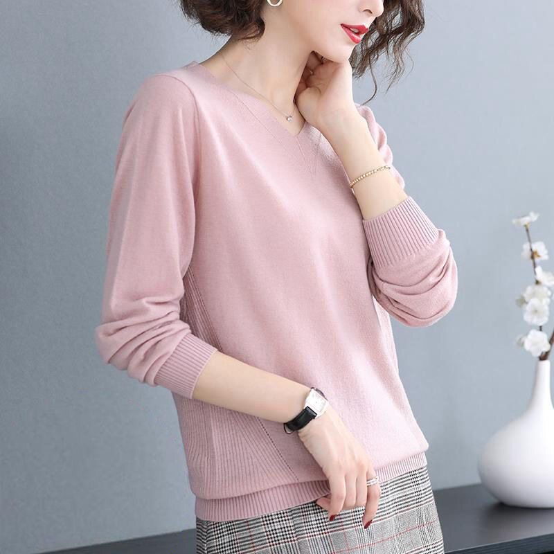 Dittutown sweater women's 2021 autumn winter new blouse women's V collar Korean version anti-kick outside wearing a thin undershirt