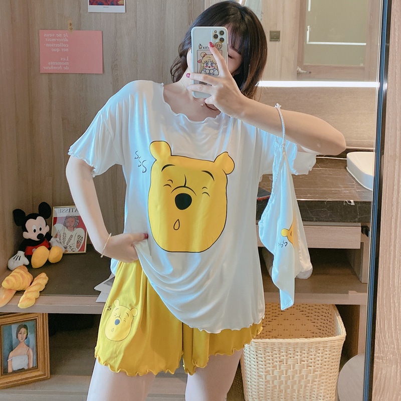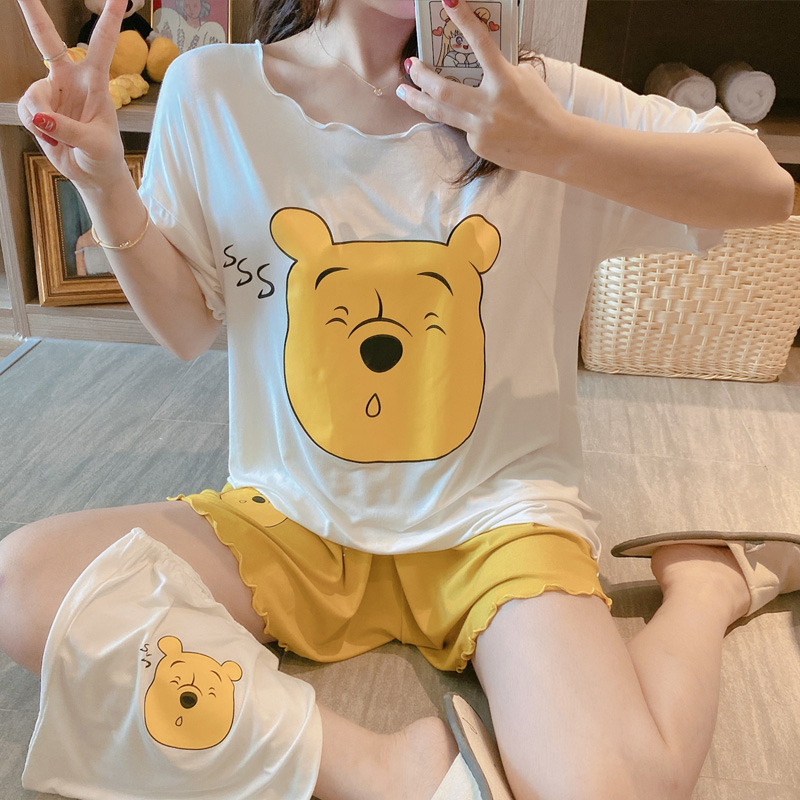 Modal pajamas women's summer short-sleeved two-piece suit thin shorts cotton loose casual home clothes can go out