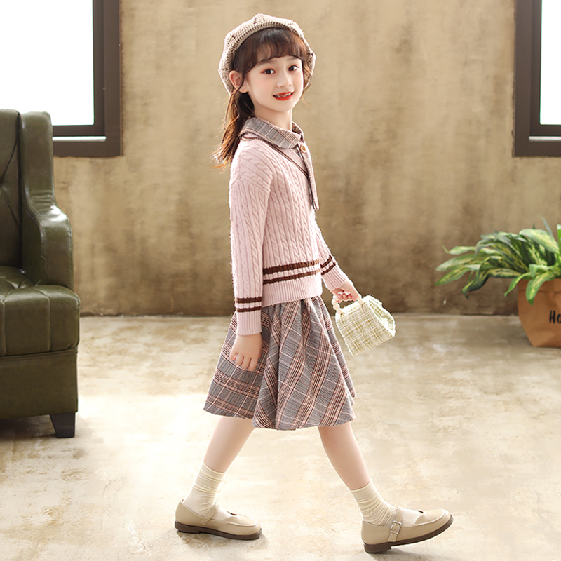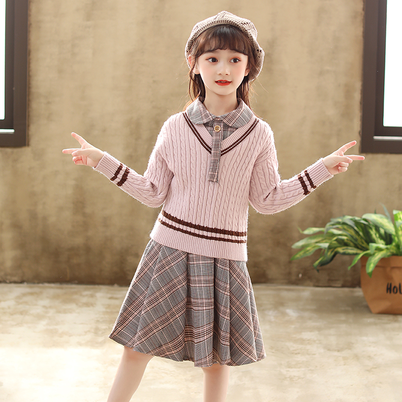 Girls dress autumn and winter 2020 new foreign style fashionable children's knitted skirt college style children's wear princess dress winter