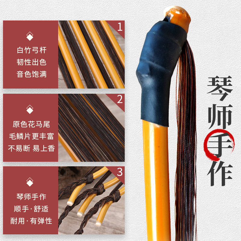 Jinghu bow professional piano bow flower ponytail performance Jinghu bow 76 white bamboo CM professional Jinghu bow accessories