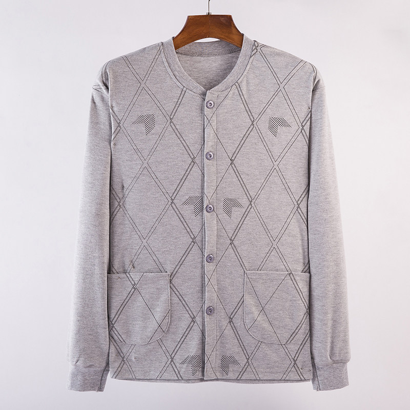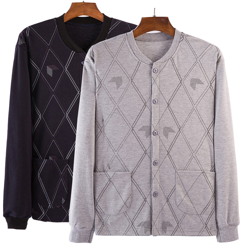 Middle-aged and elderly pure cotton cardigan autumn clothes button-up thermal underwear plus fat plus size loose one-piece dad shirt