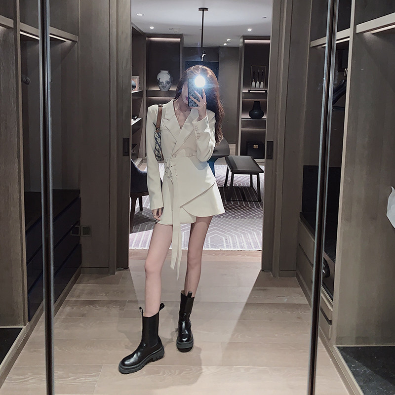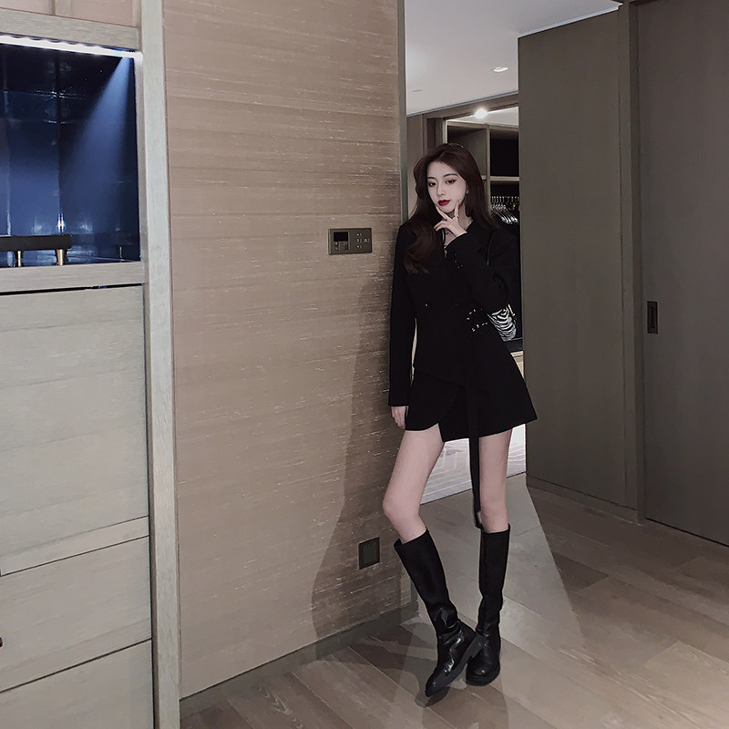 Royal sister style black waist-cinching suit dress women's 2021 new early spring high-end sense fried street small man skirt