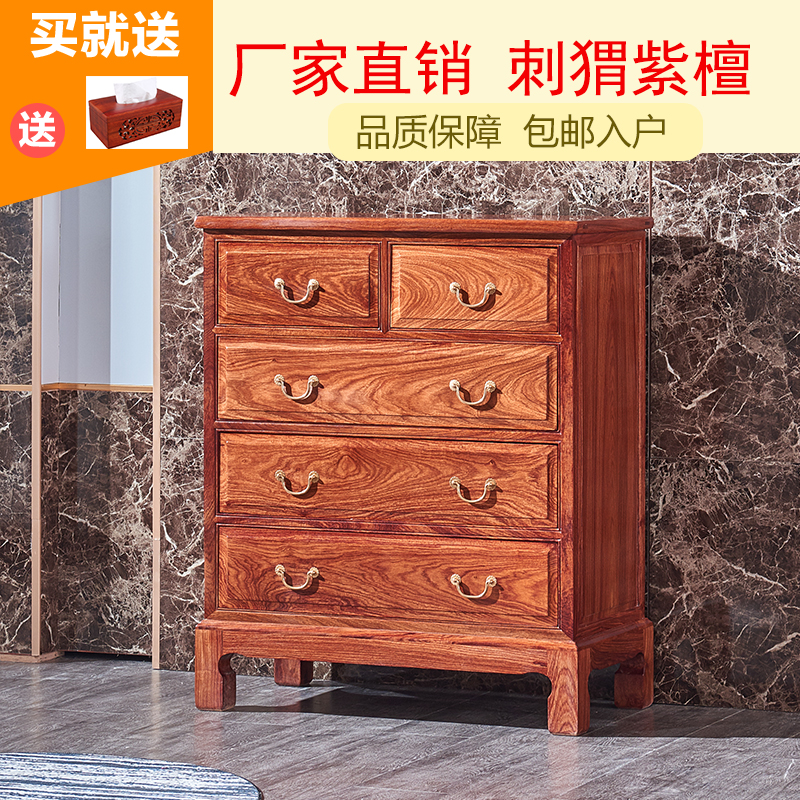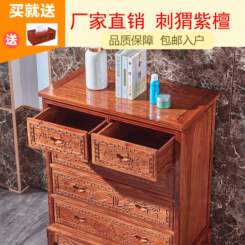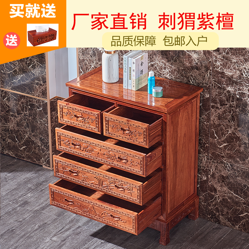 Mahogany Chinese hedgehog Zitan chest of drawers Bedroom antique carved bucket cabinet Living room Solid wood rosewood storage cabinet