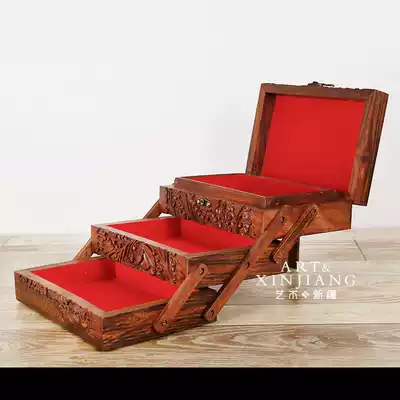 Solid wood jewelry box storage box home antique whole wood walnut wooden box Pakistan handmade carved jewelry box