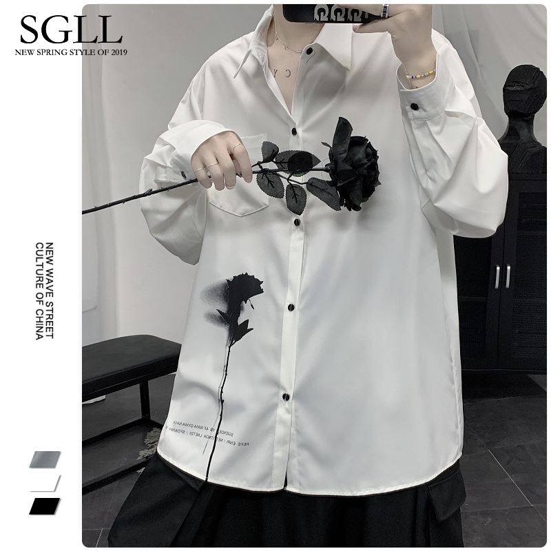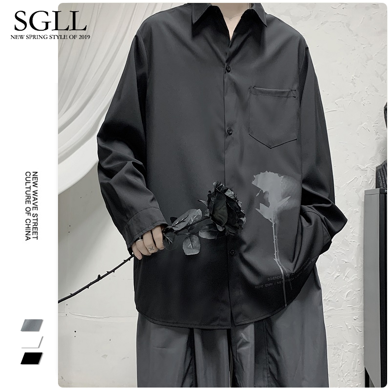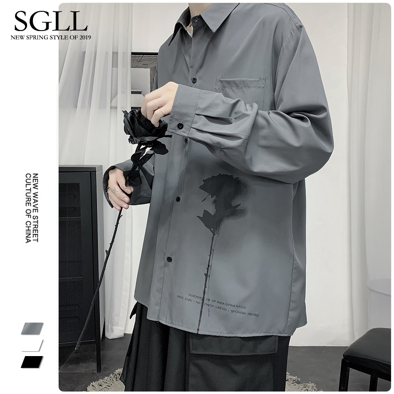 Autumn high-end shirt men's long-sleeved print design niche shirt Hong Kong style casual top loose coat tide