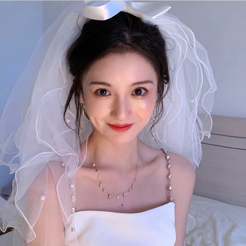 Four layers of curbside nail beads butterfly knot main drawing of small mesh head yarn two layers of curbside nail beads butterfly knot white double layer of light yarn two layers of curbside with no pearl satin face big butterfly curl